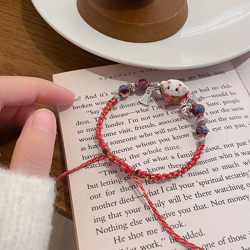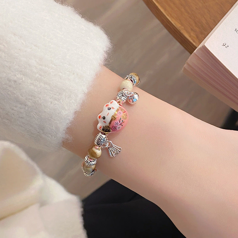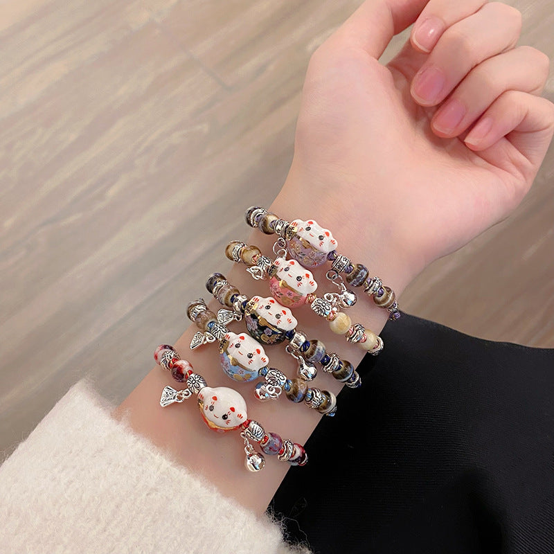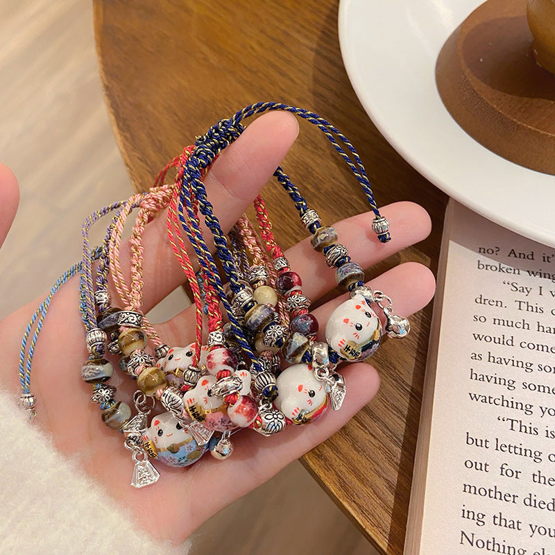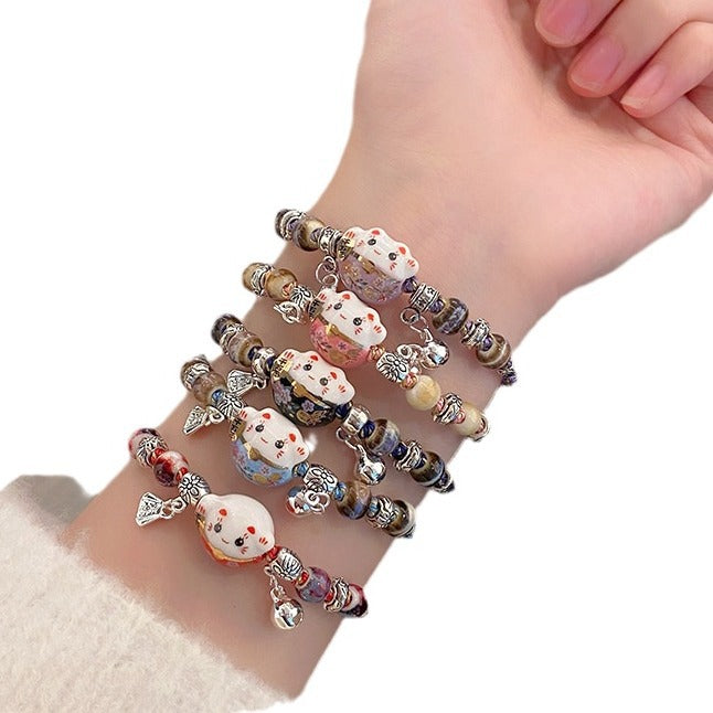 Artistic Fresh Woven Ceramic Lucky Cat Carrying Bracelets