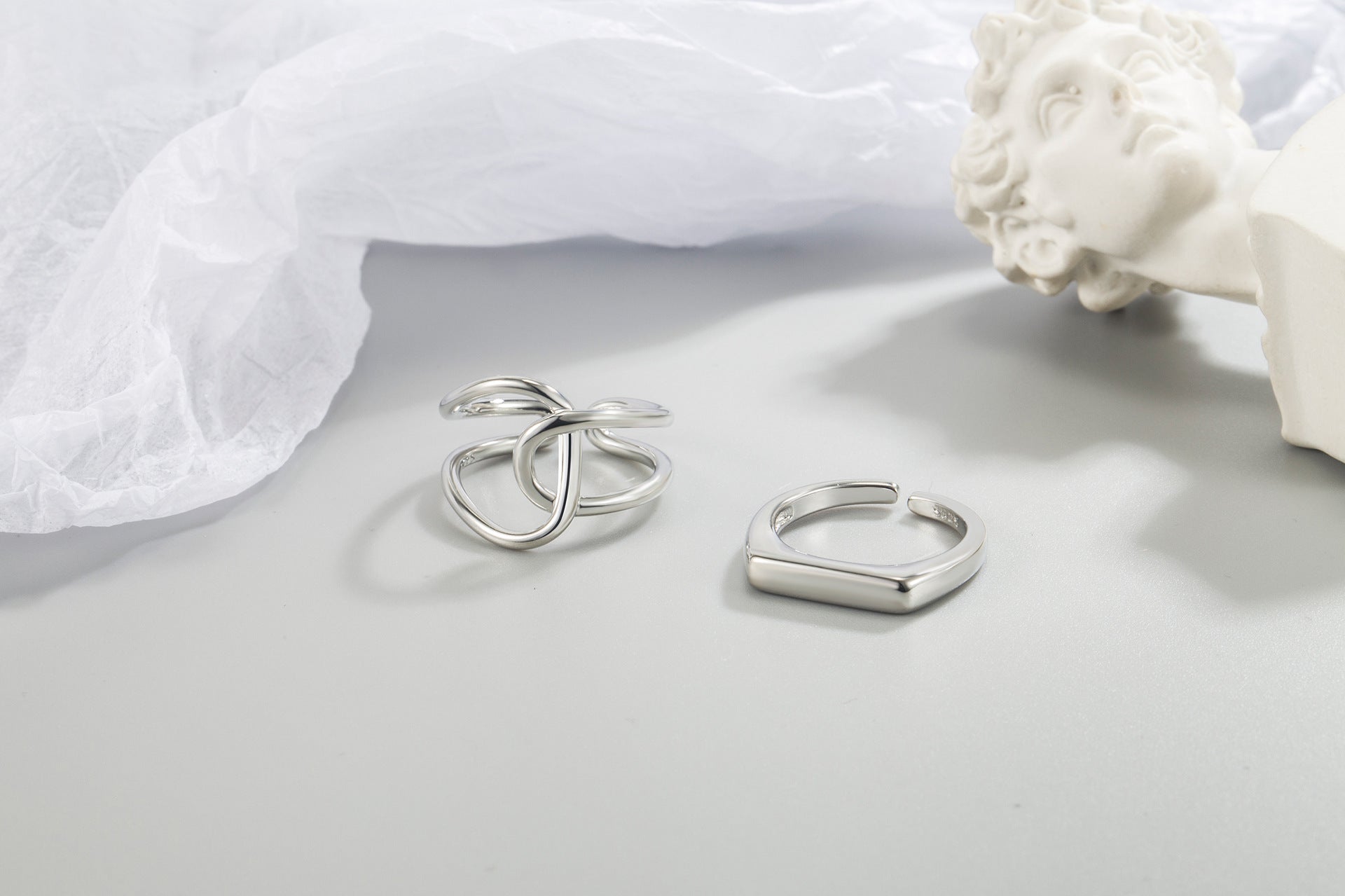 Asymmetric Line Female Design Irregular Interwoven Rings
