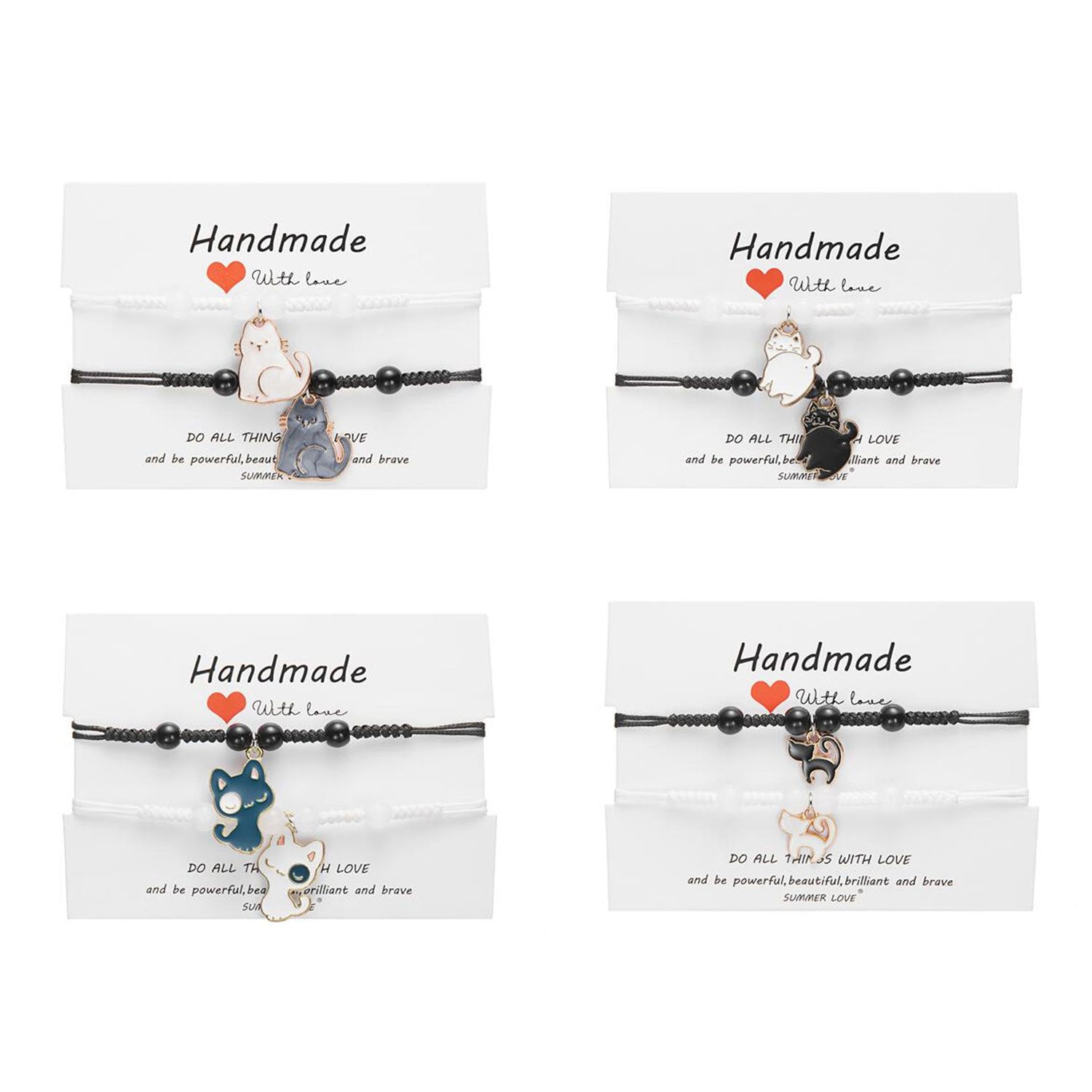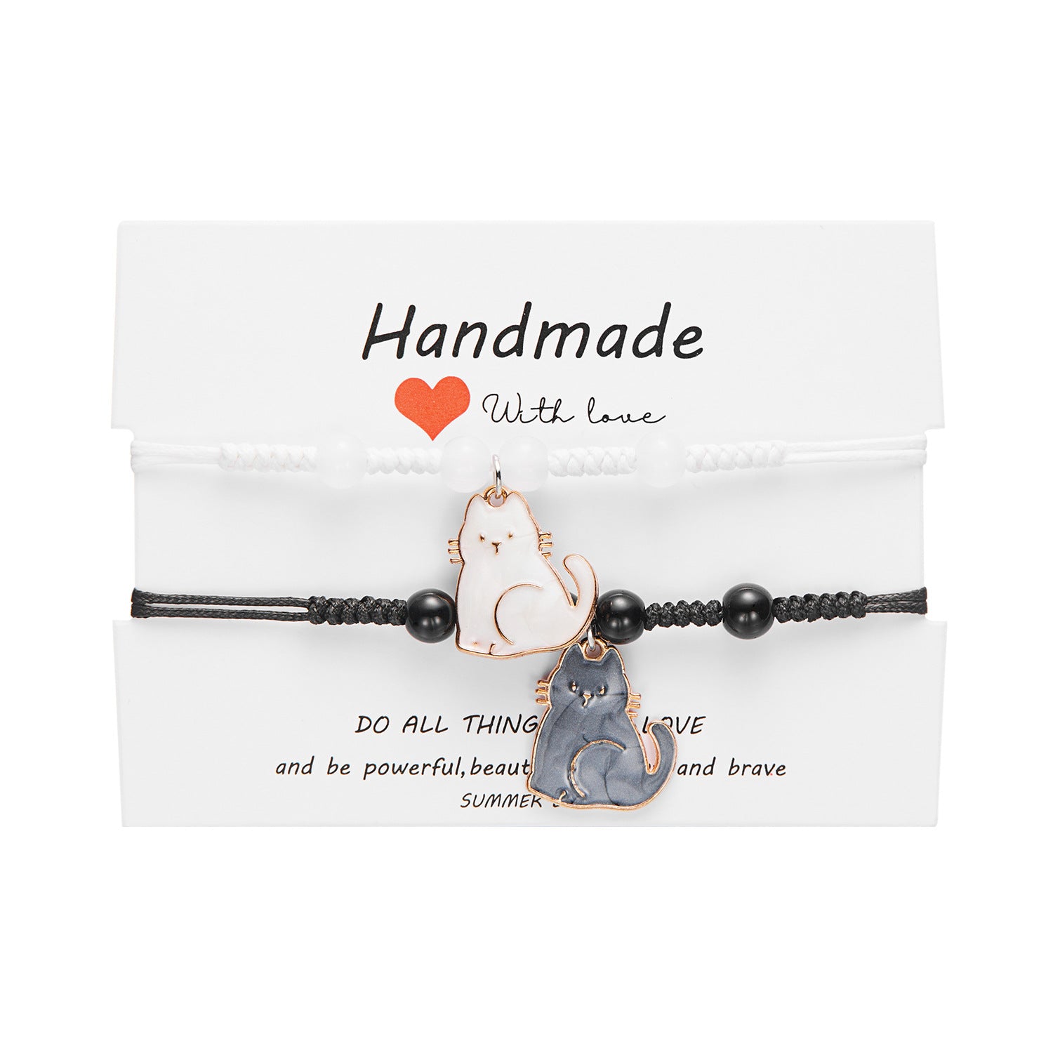 Black White Cat Heart Paper Card Cute Bracelets