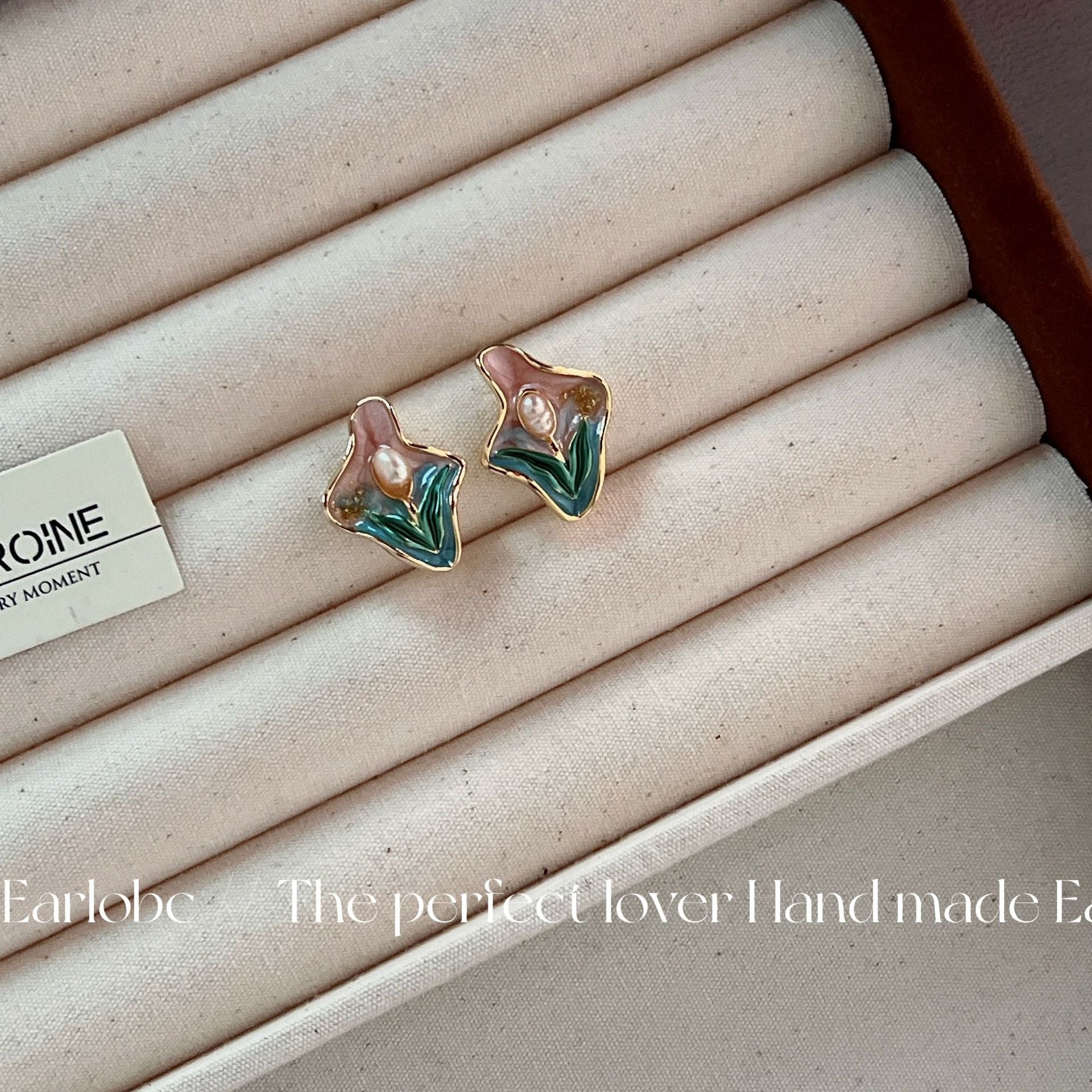 Blue Pink Freshwater Pearl Tulip Niche Earrings