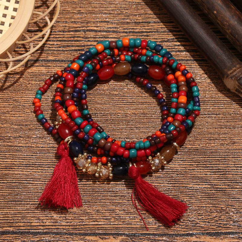 Bohemian Ethnic Style Beaded Set Tassel Bracelets