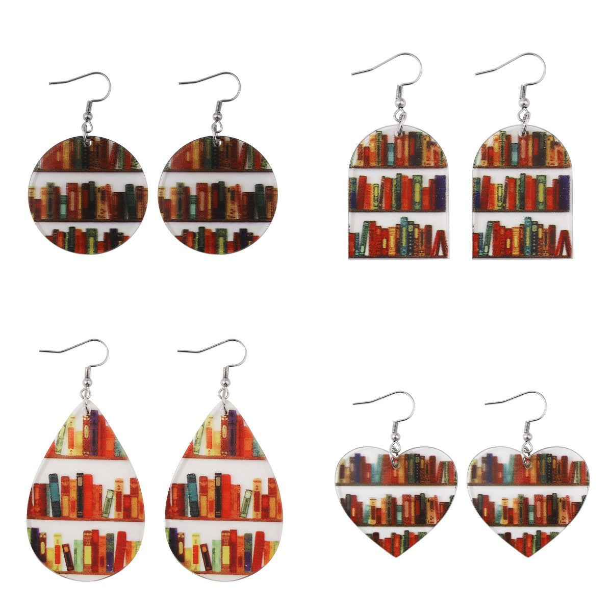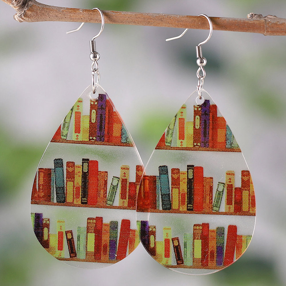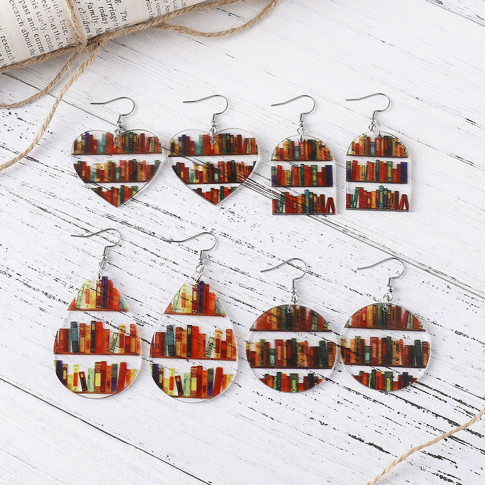 Bookshelf Transparent Acrylic Graduation School Opening Earrings