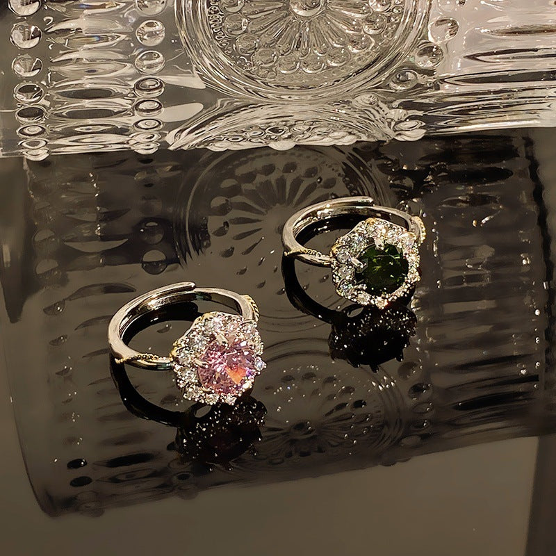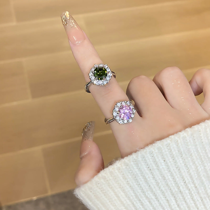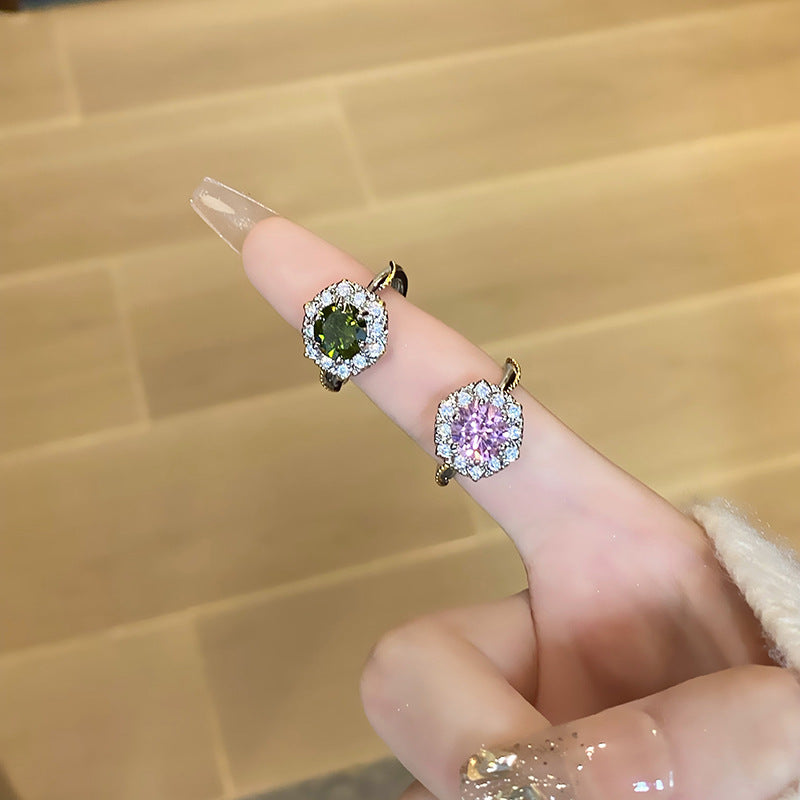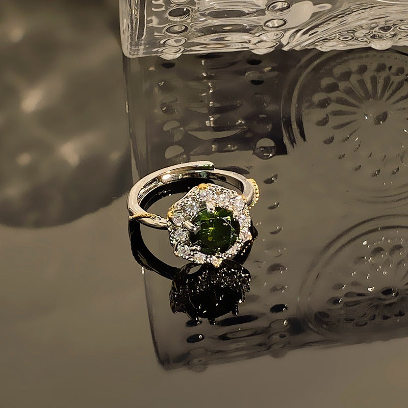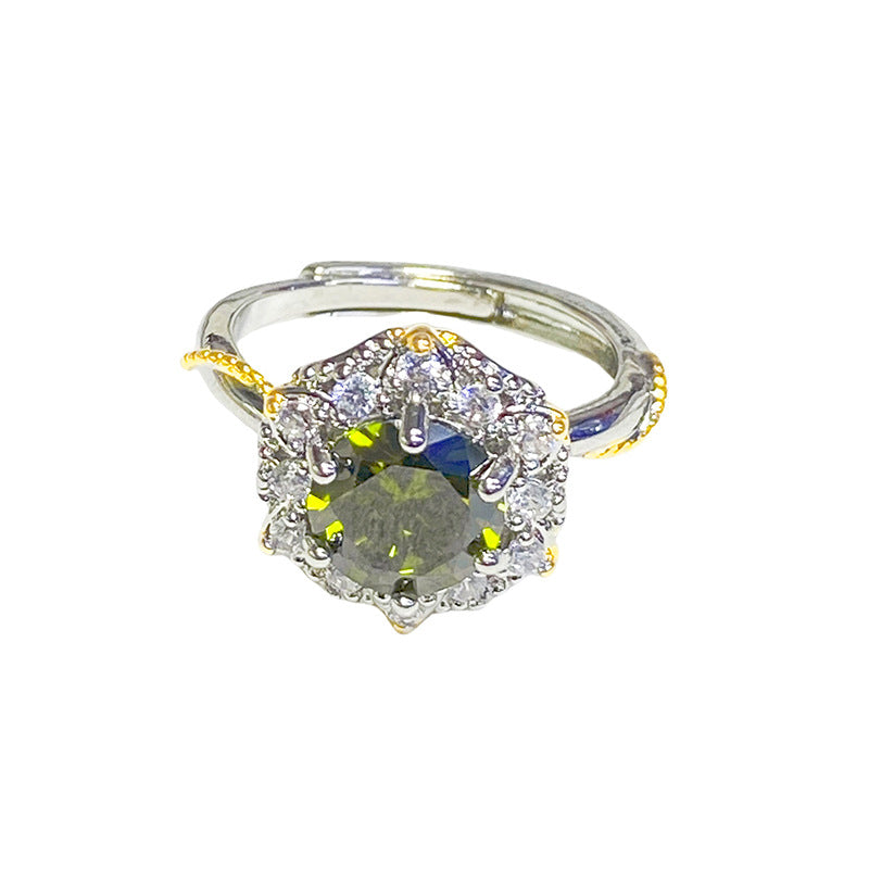 Bouquet Olive Green Colored Gems Brushed Cord Rings