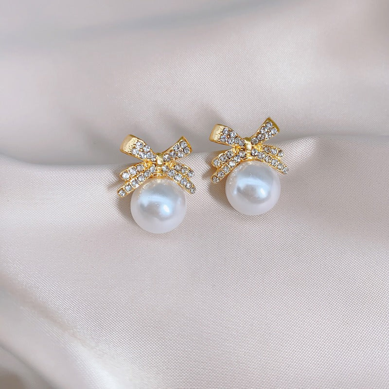 Bow Pearl Diamond Temperament Special Interest Light Earrings