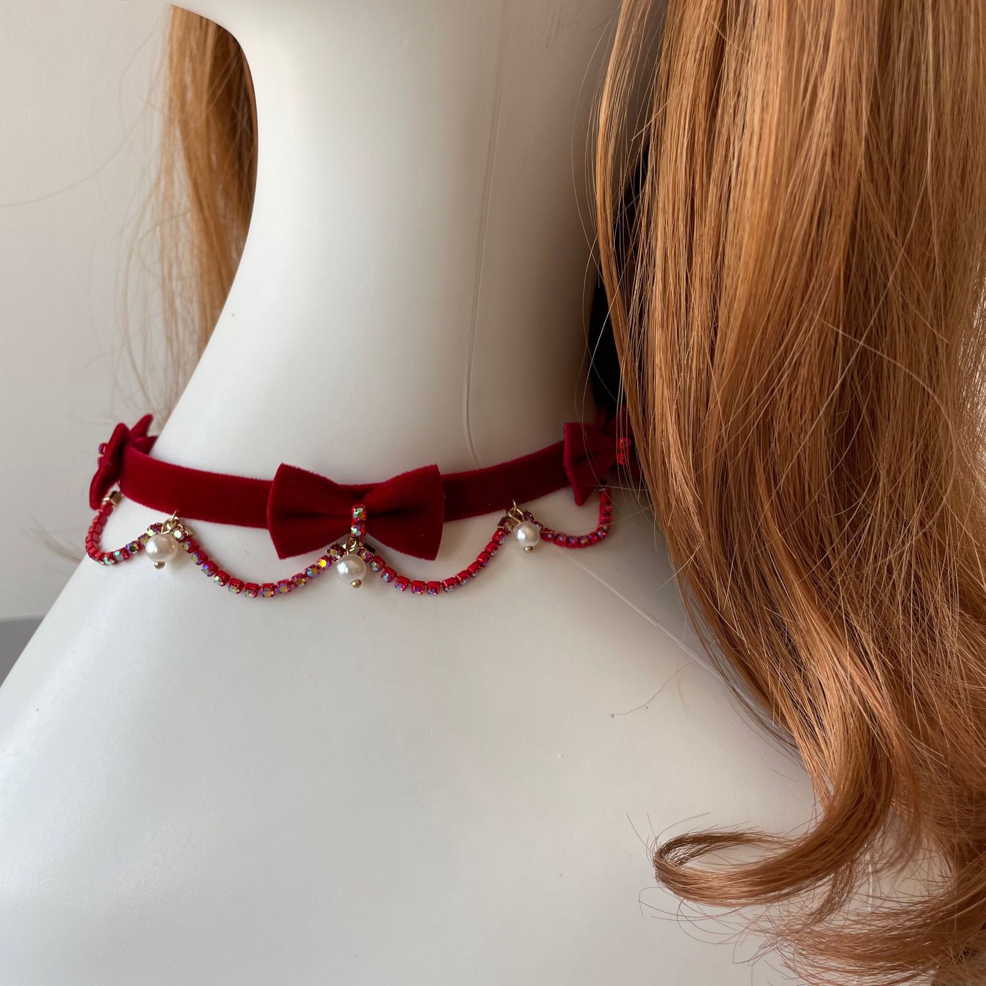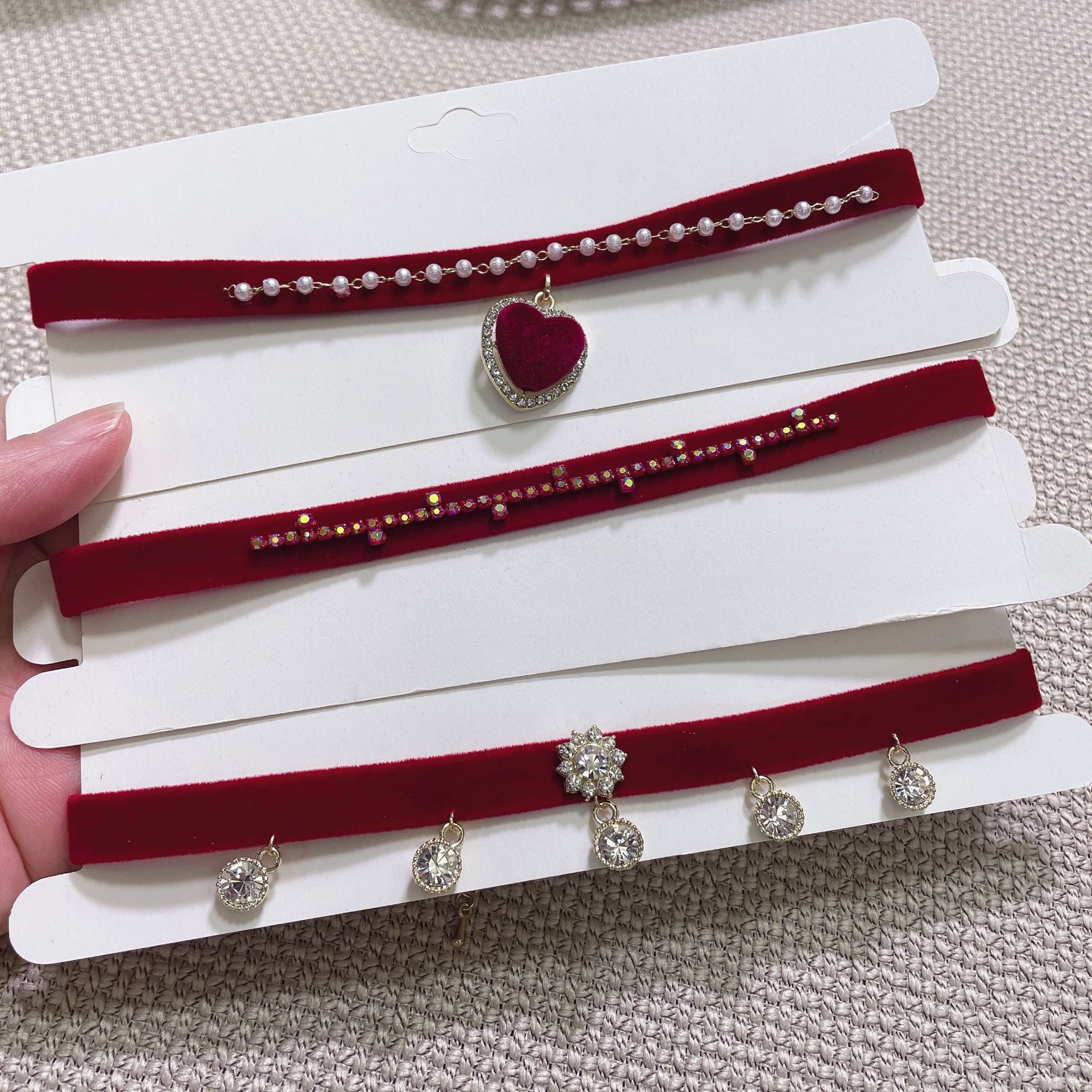 Bridal Red Veet Diamonds Fairy Temperamental Necklaces