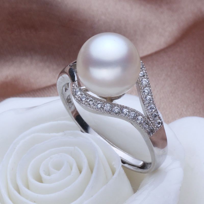 Broadcast Sier Pearl Open Mouth Zircon Female Copper Plated Rings