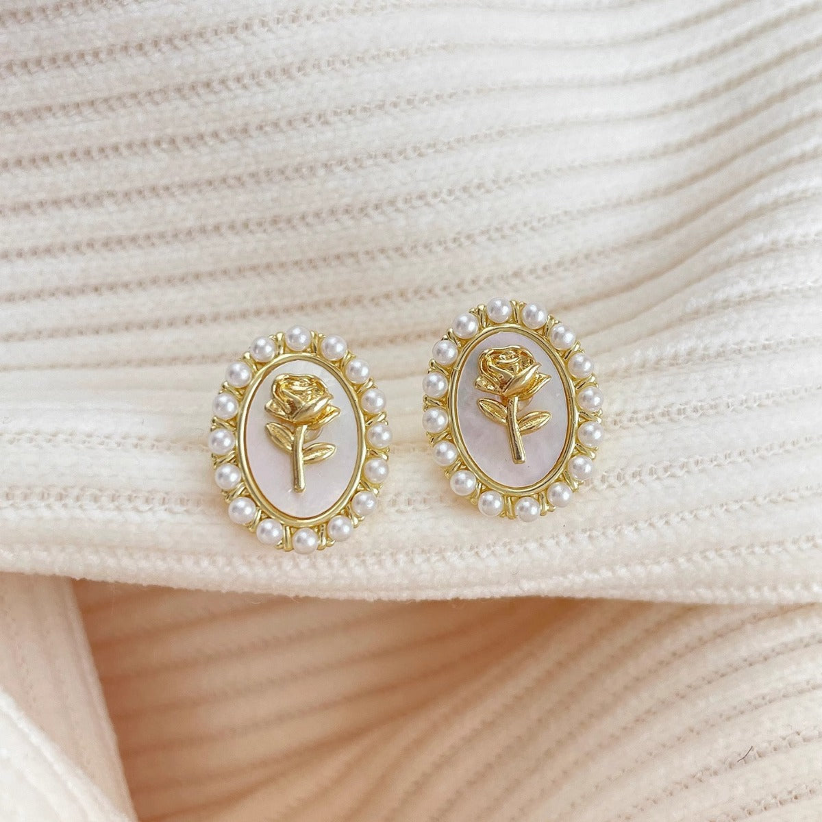 Camellia Pearl Oval Retro High-grade Light Earrings