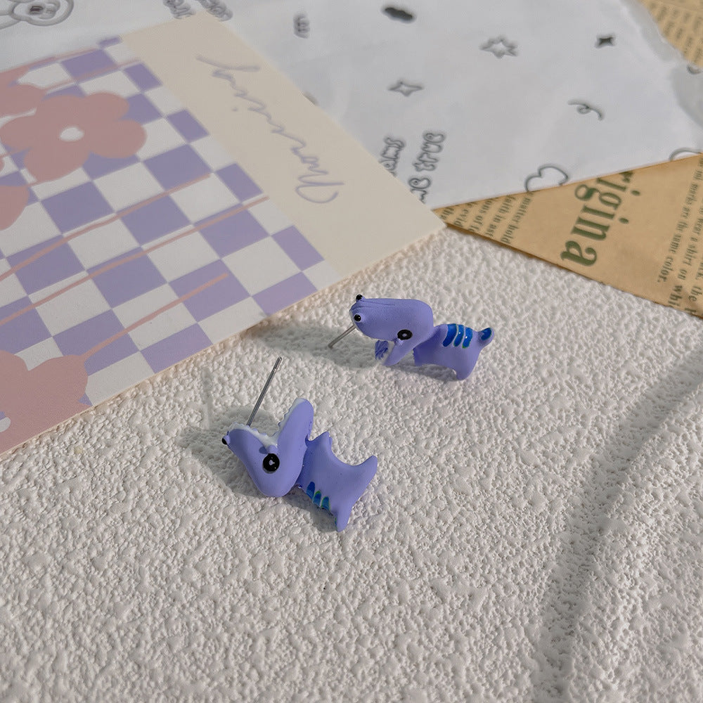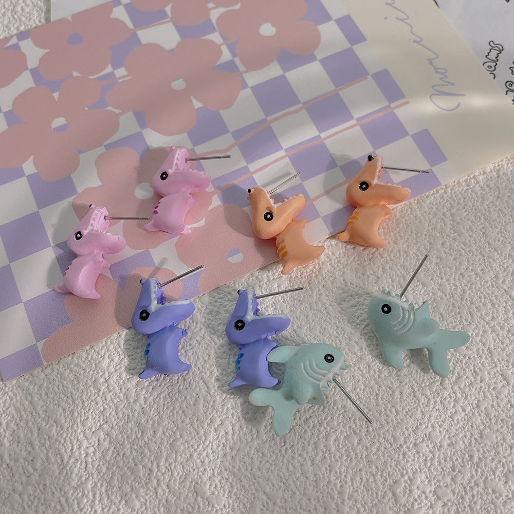 Cartoon Dinosaur Animal Resin Painting Oil Earrings