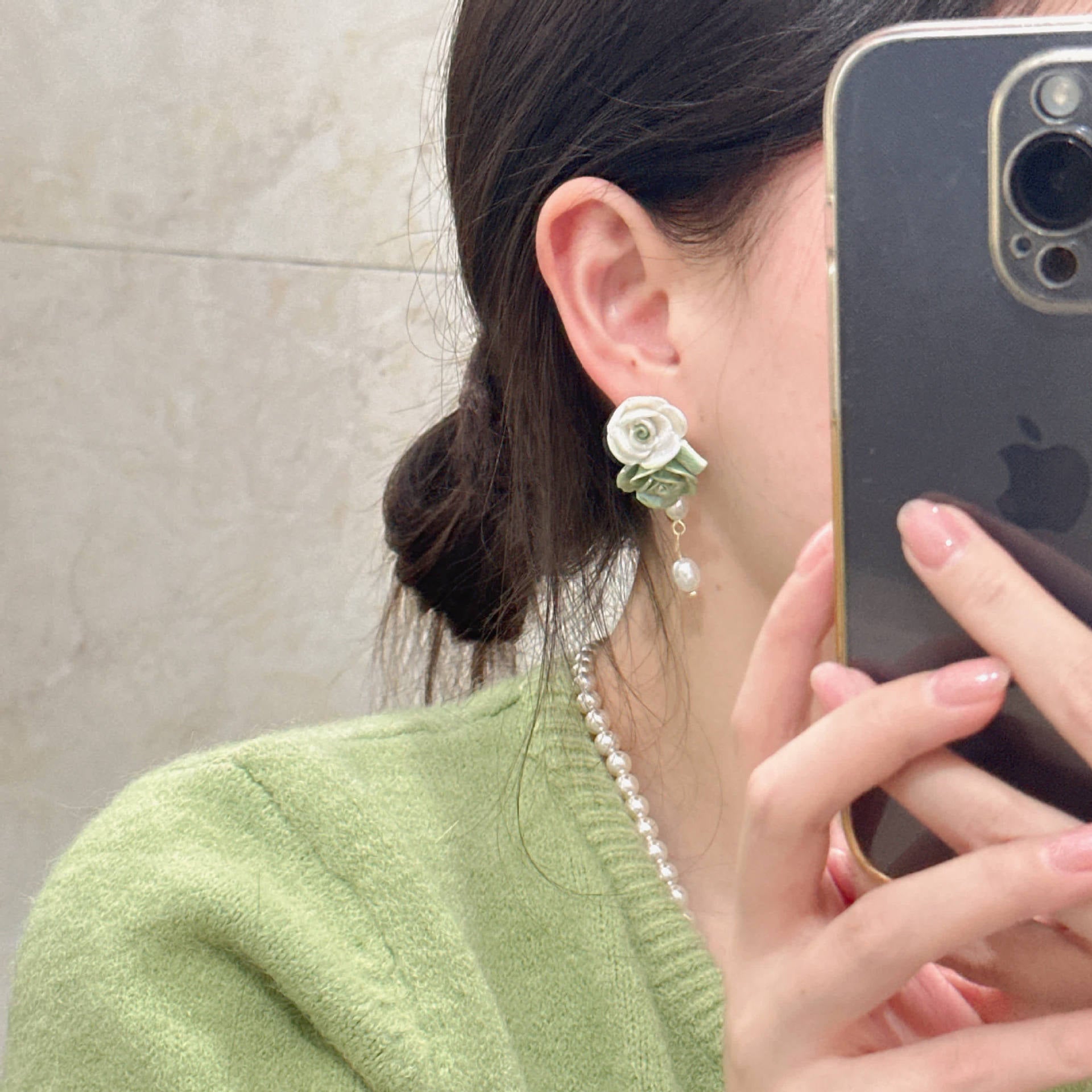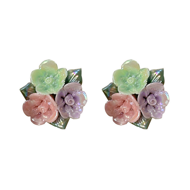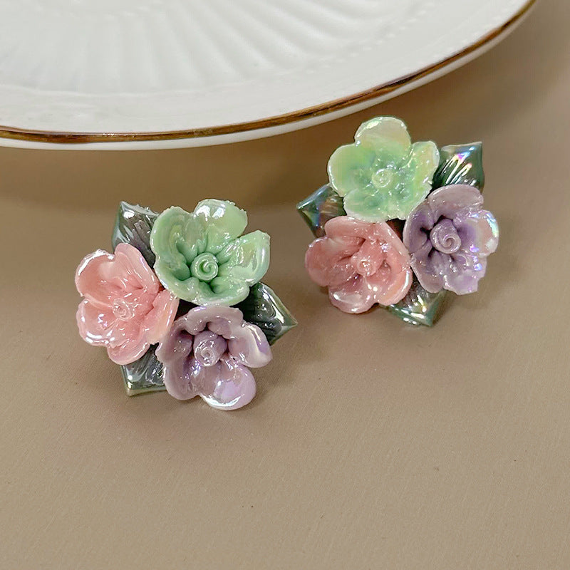 Ceramic Colorful Rose Fresh Mori Style Earrings