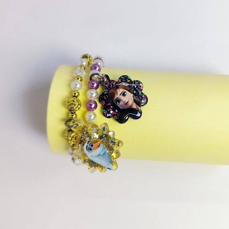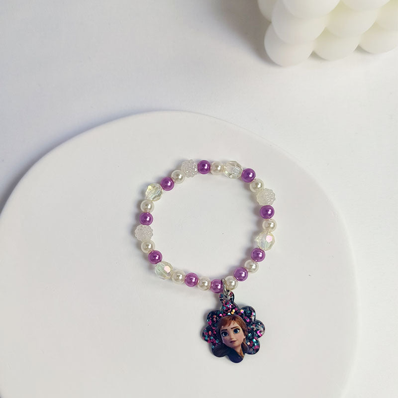 Children's Cartoon Pearl White Purple Handmade Acrylic Bracelets