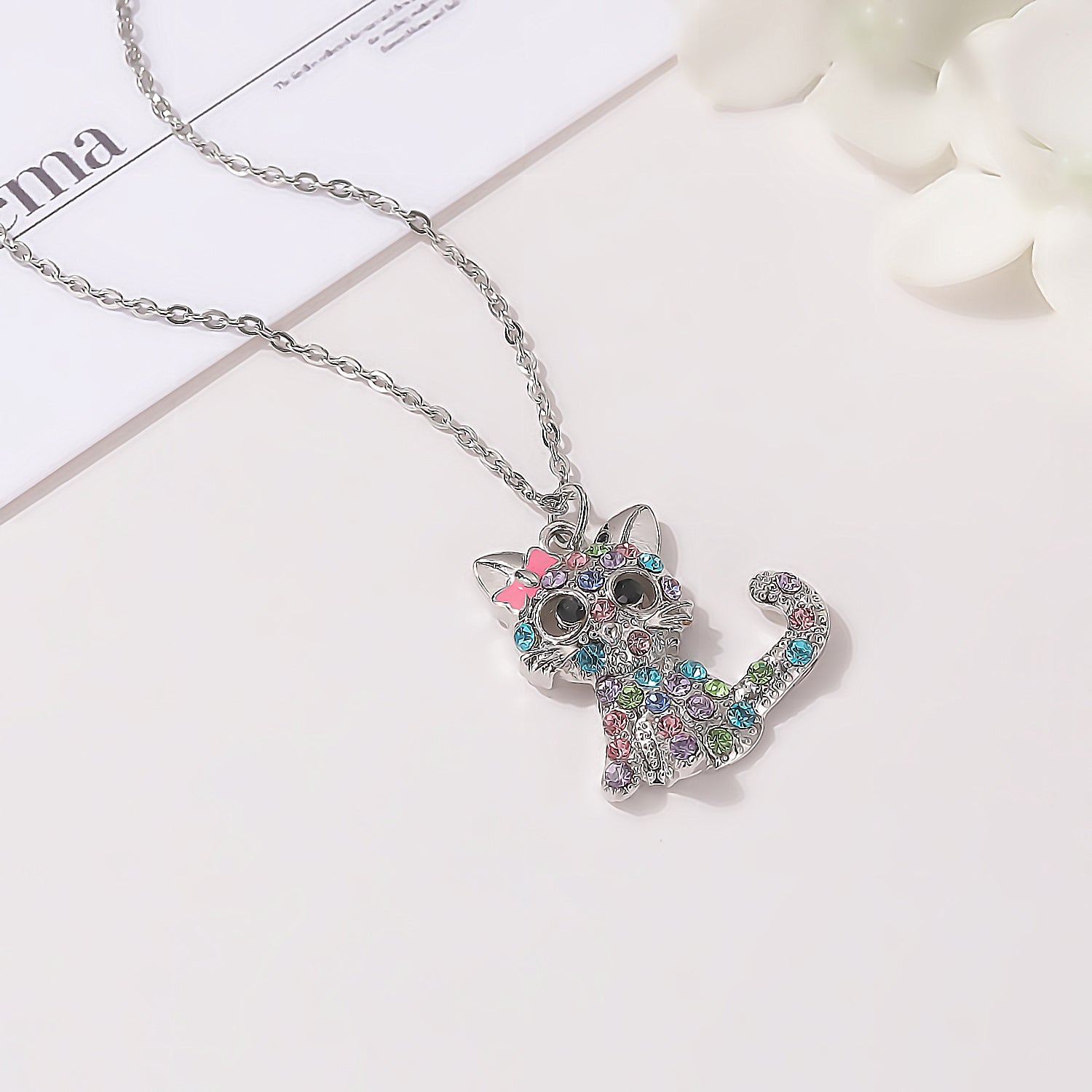 Children's Ornament Color Bow Kitty Christmas Day Cartoon Necklaces
