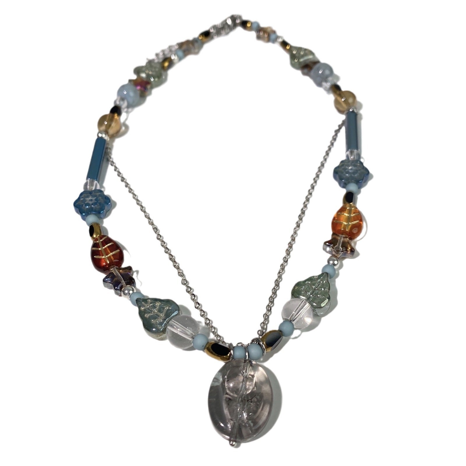 Color: Antique Beaded Necklace, Colorized Butterfly Necklace