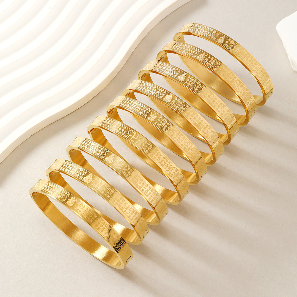 Chinese Style Zodiac Words Heart Sutra Stainless Steel Vintage Rings