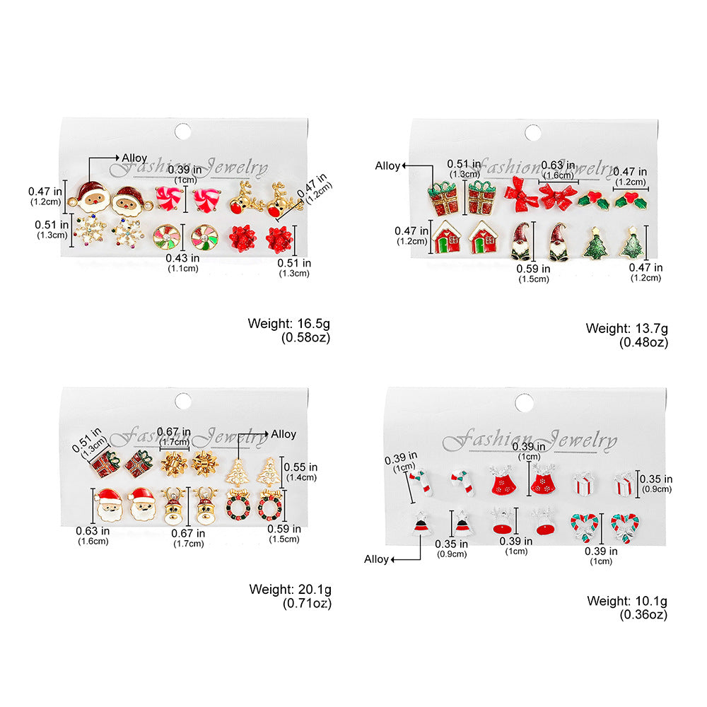 Christmas Card Pairs Combination Old Snowflake Elk Earrings