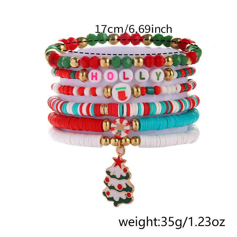 Christmas Female Snowflake Tree Polymer Clay Bracelets