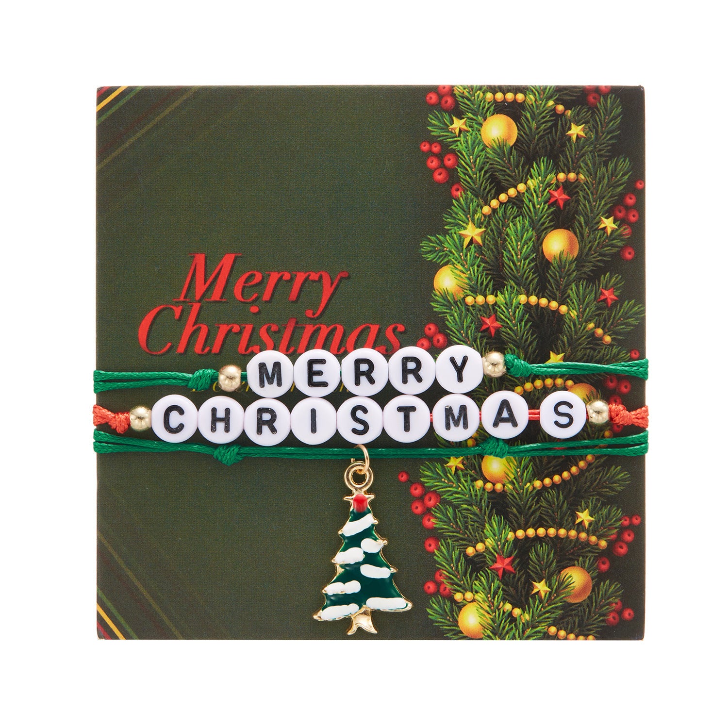 Christmas Handmade Letter Beaded Tree Santa Bracelets