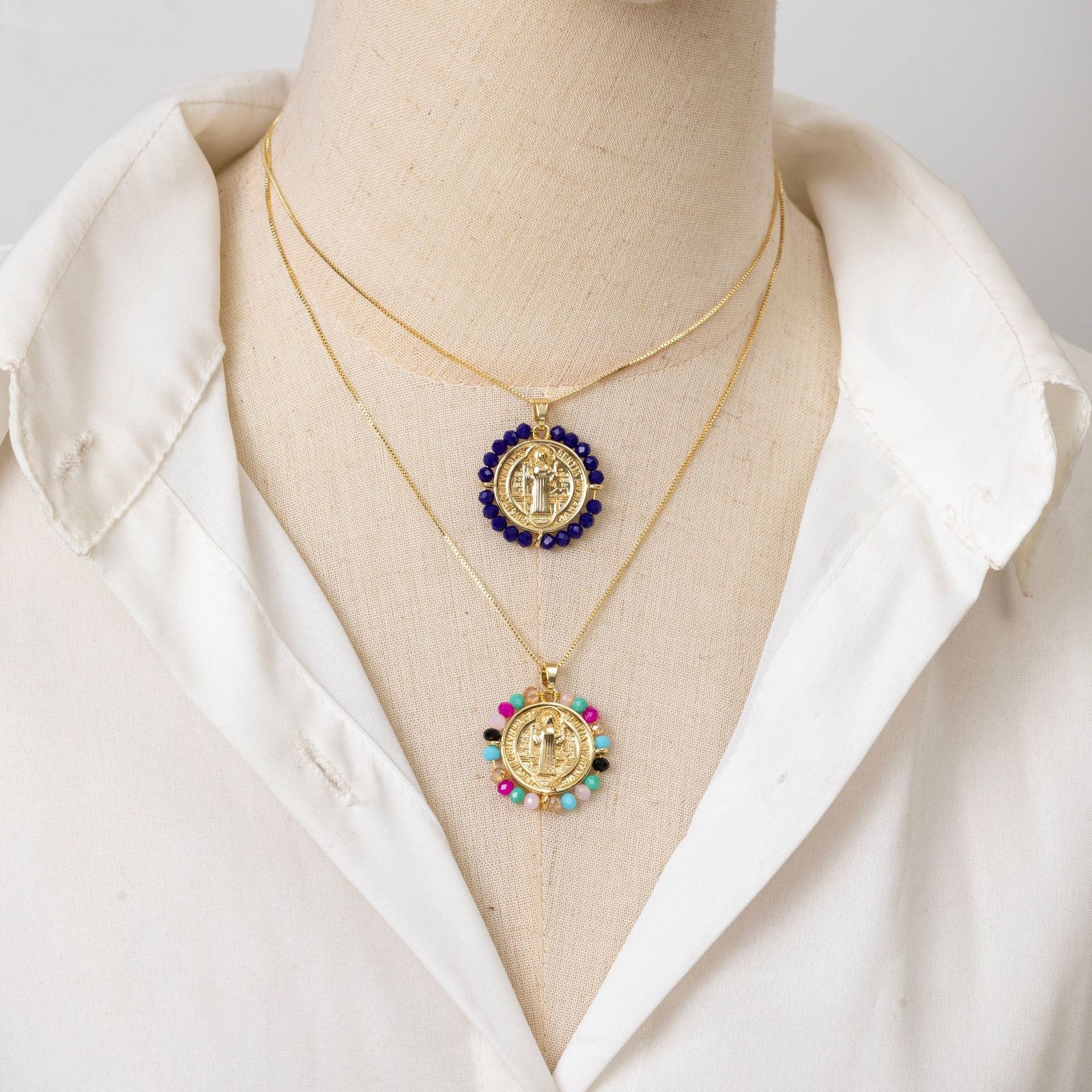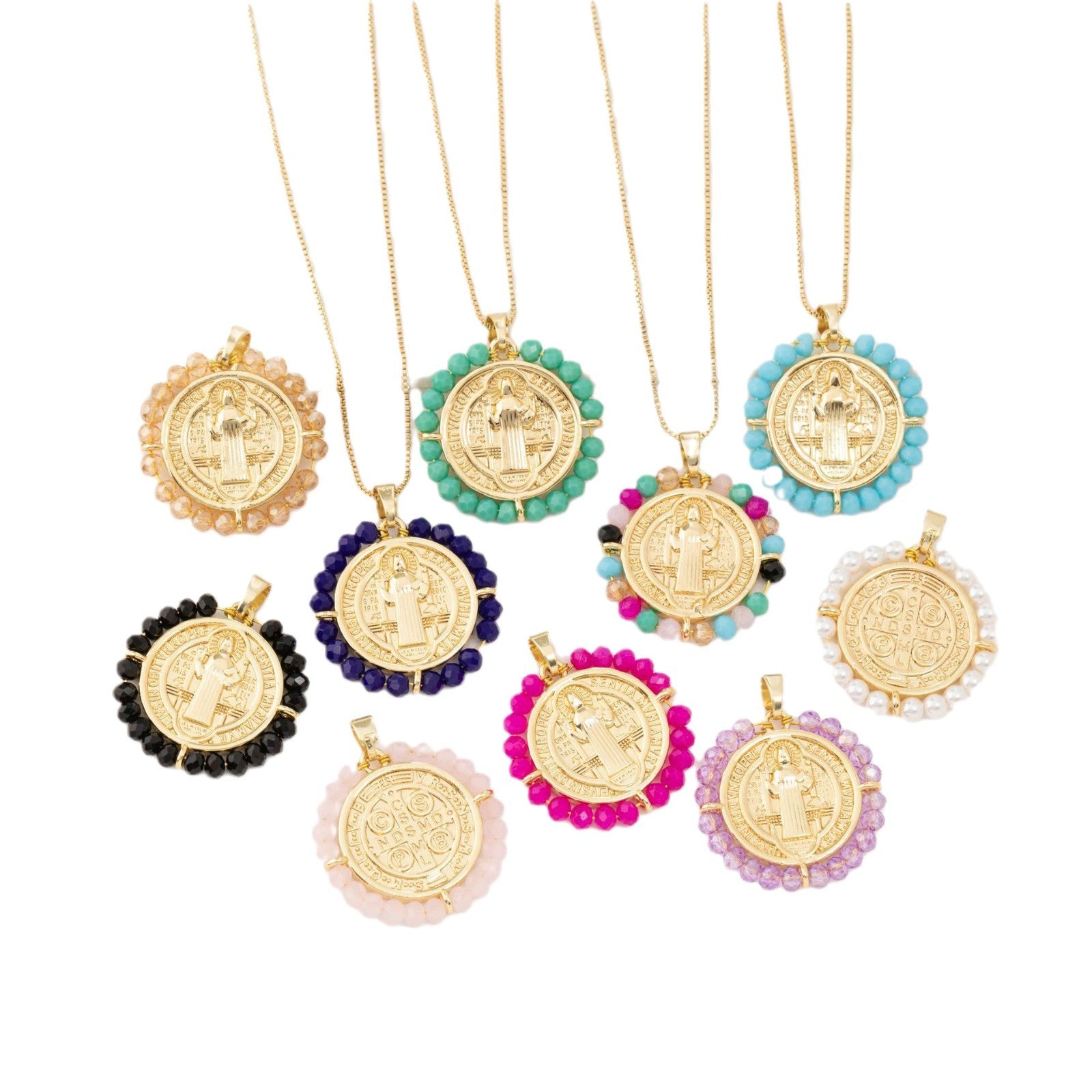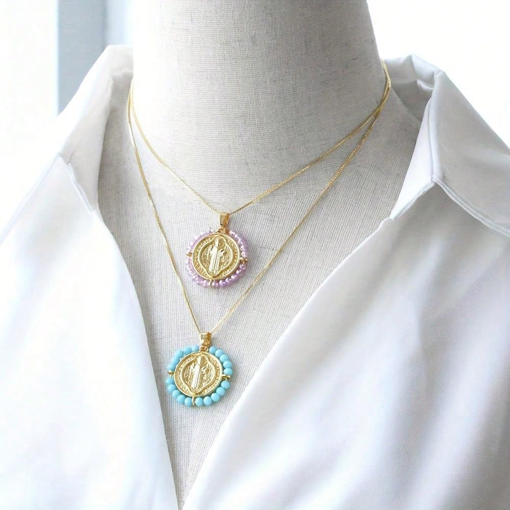 Colorful Crystal Religious Virgin Mary Accessories Copper Necklaces