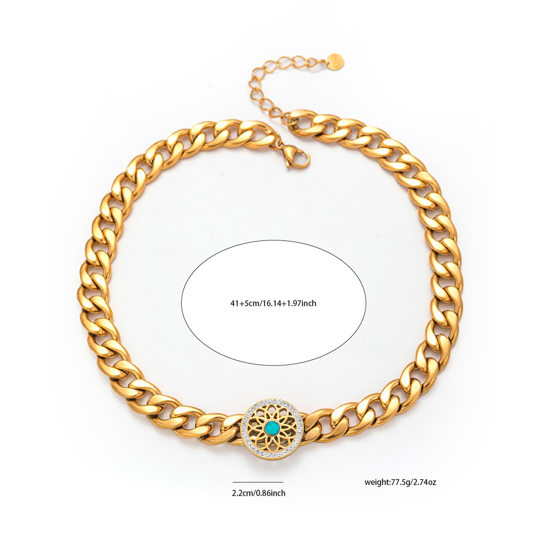 Compass Fashion Personality Stainless Steel Micro Inlaid Zircon Temperament Necklaces
