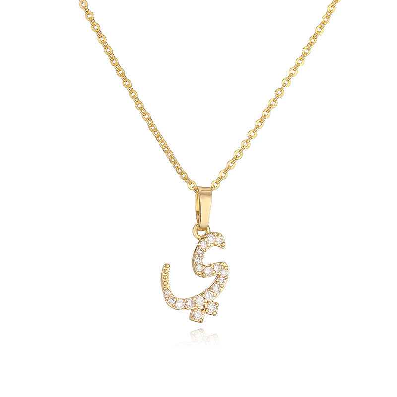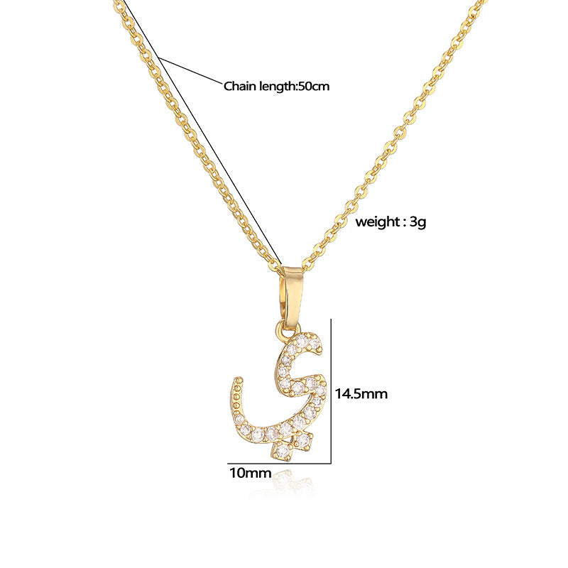 Copper Inlaid Zirconium Arabic Letter Personalized Necklaces