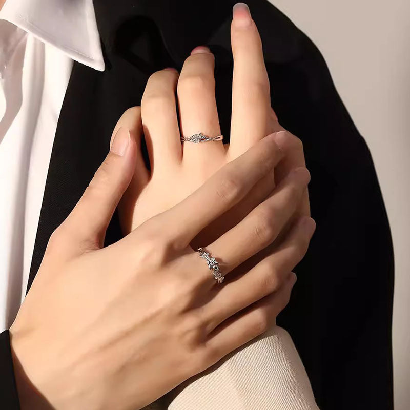 Couple Sterling Sier Pair Mori Style Personalized Niche Design Rings