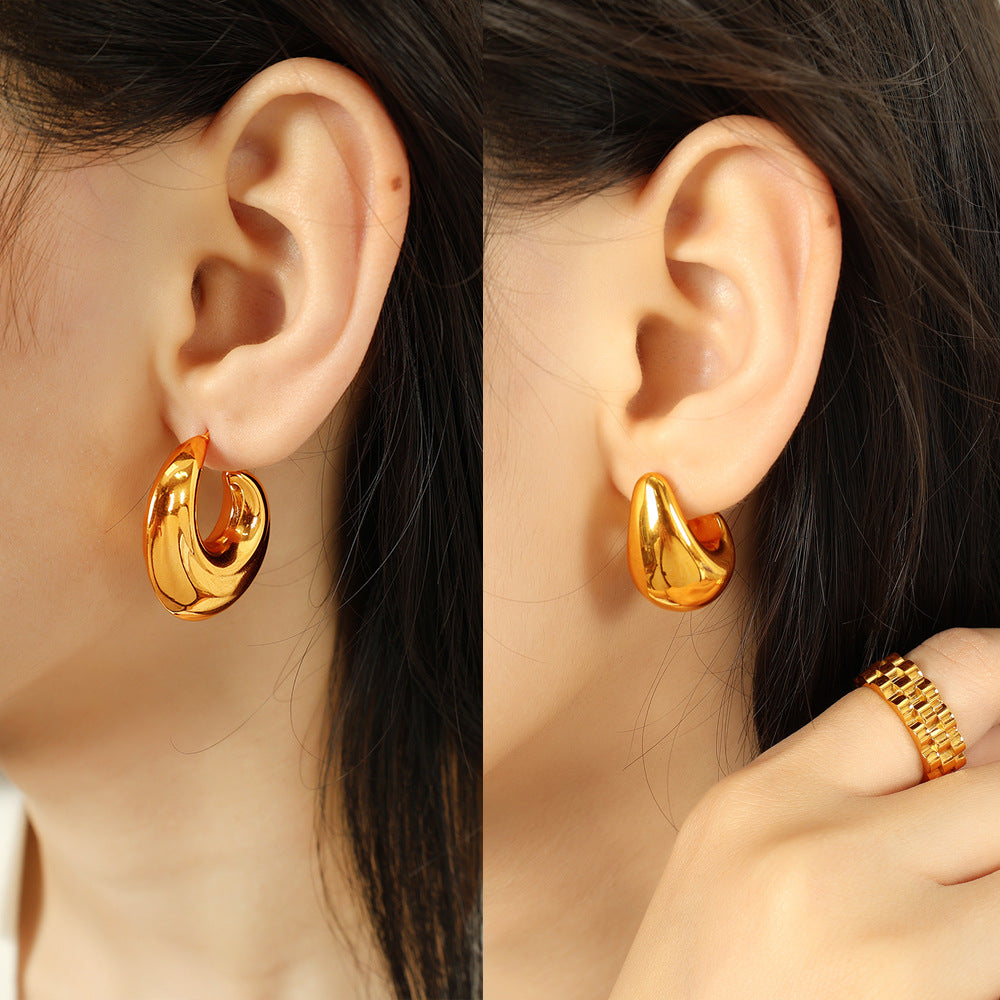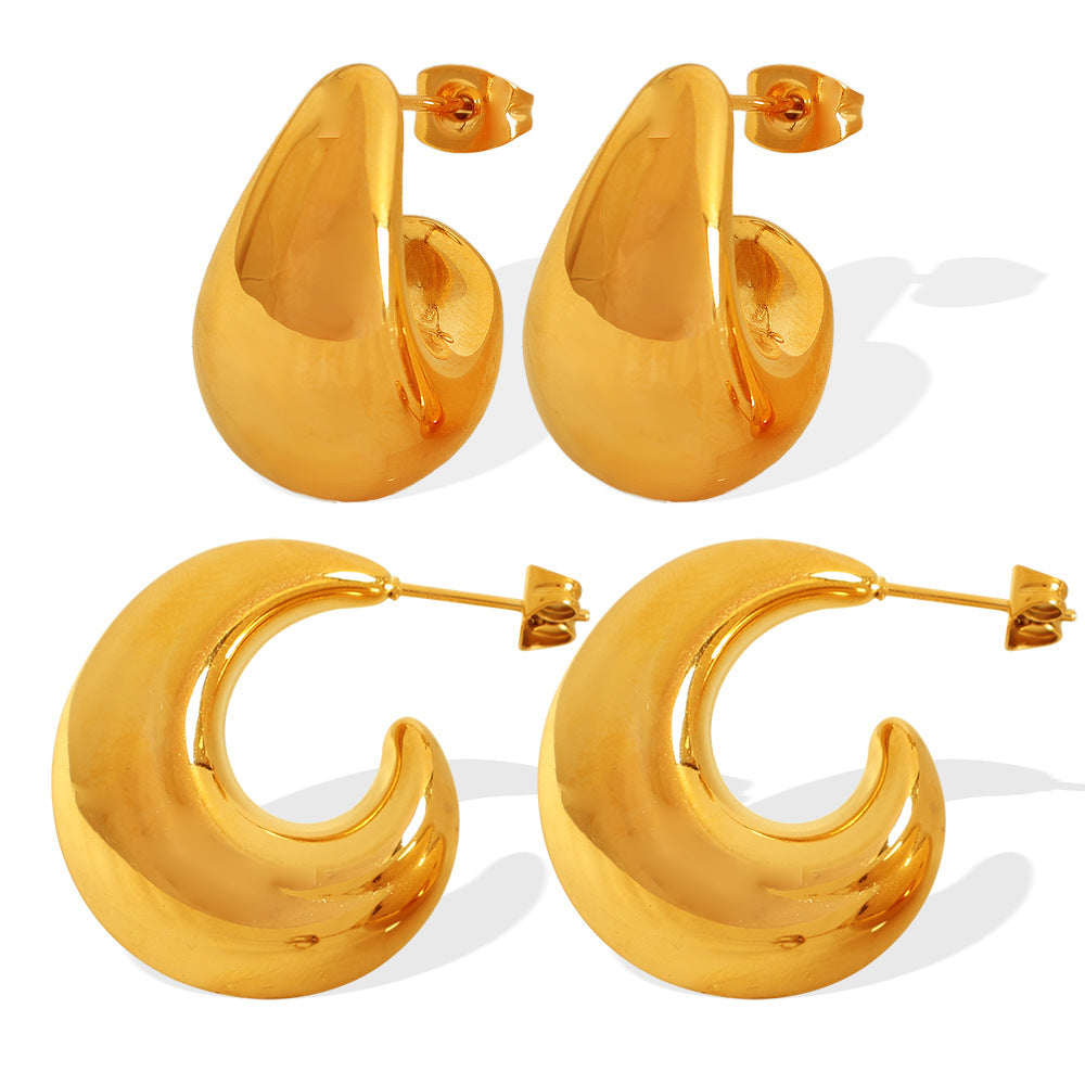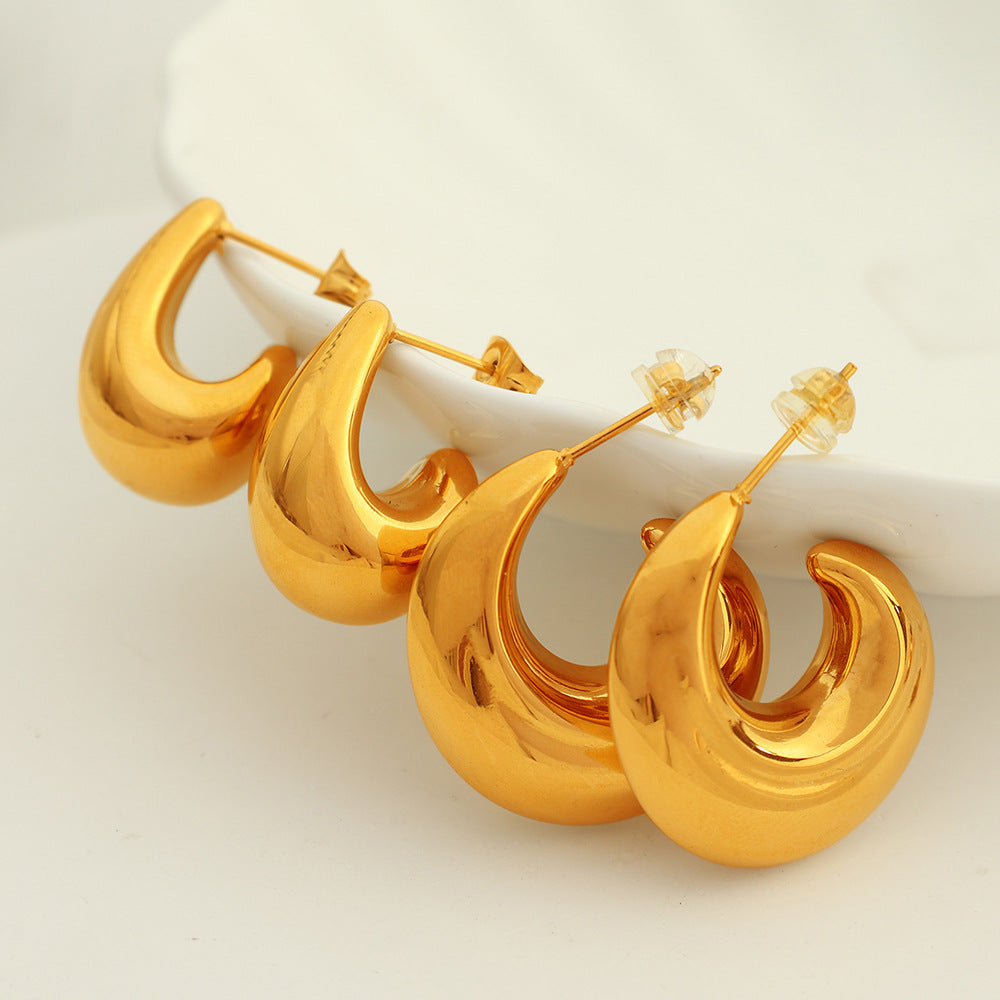 Crescent Hollow Simple Glossy Titanium Ear Earrings