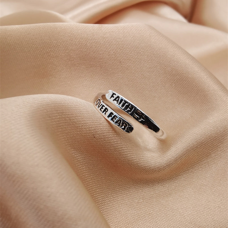 Cross Belief Over Fear Niche Retro Creative Opening Rings