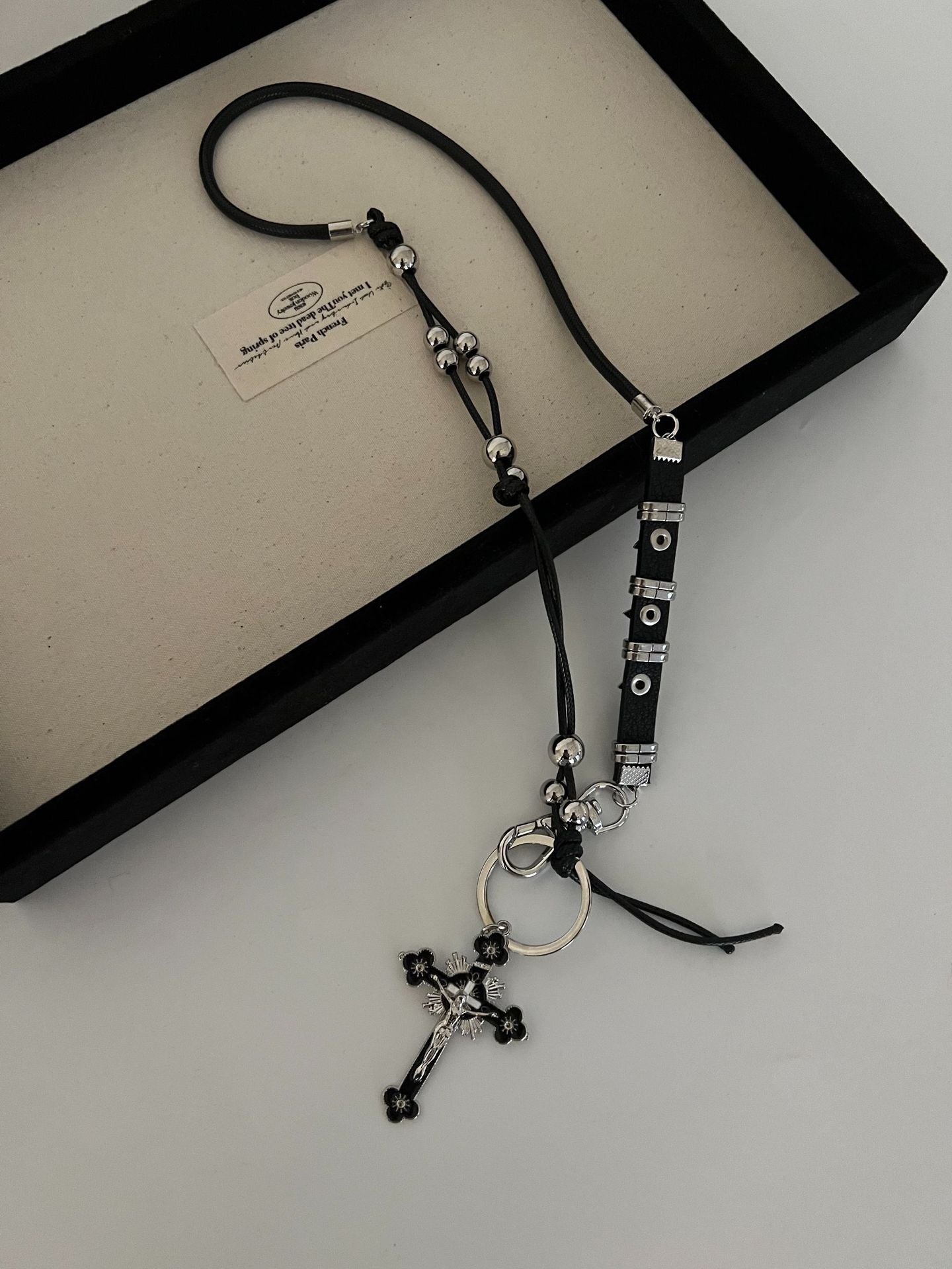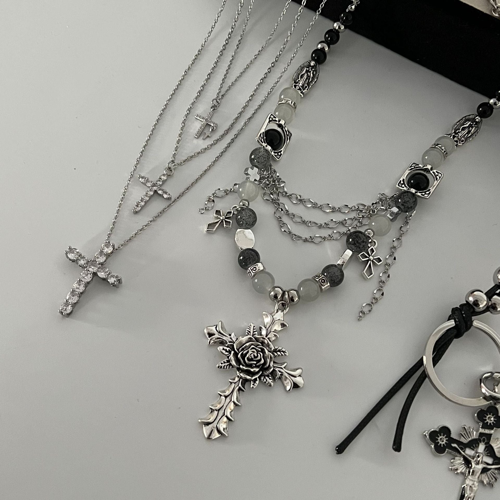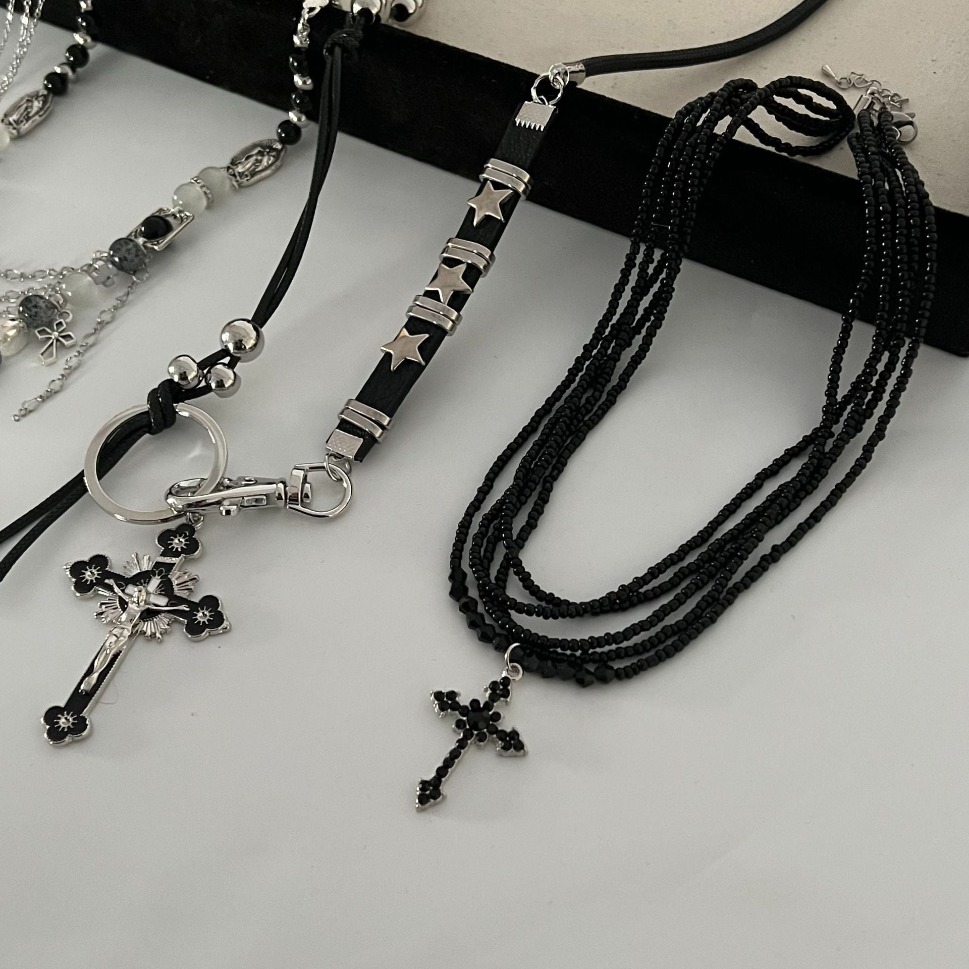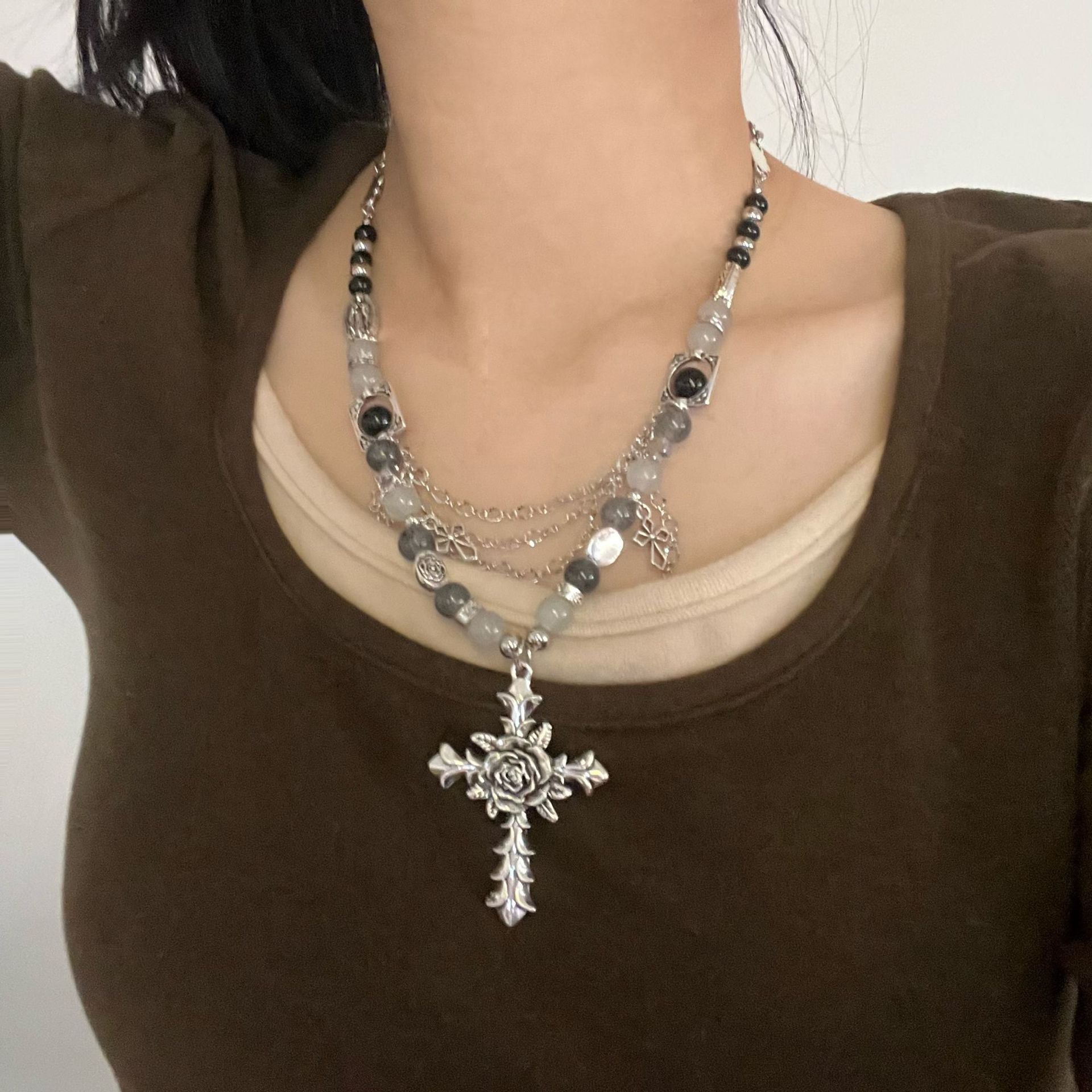 Cross Simple Vintage Design Dark Beaded Necklaces