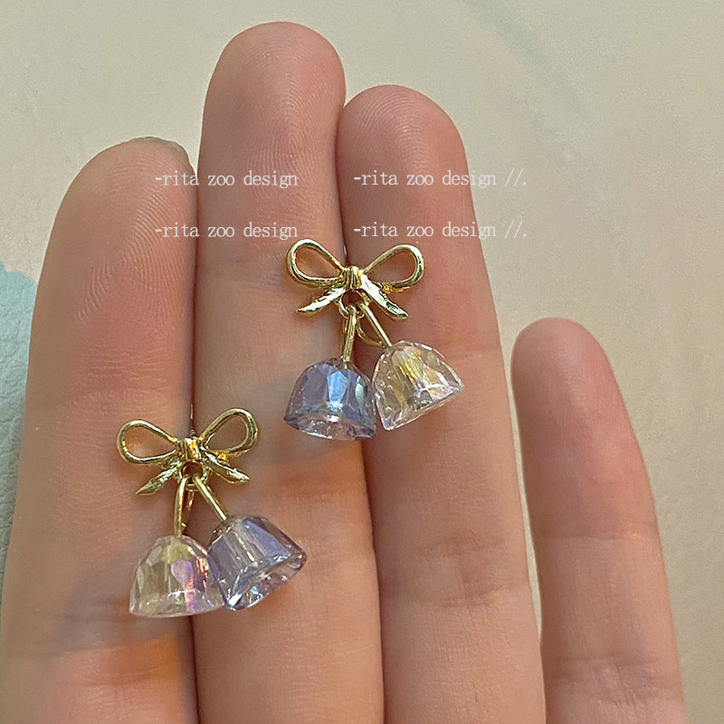 Crystal Christmas Exquisite High Sense Girlish Bow Bell Sier Earrings