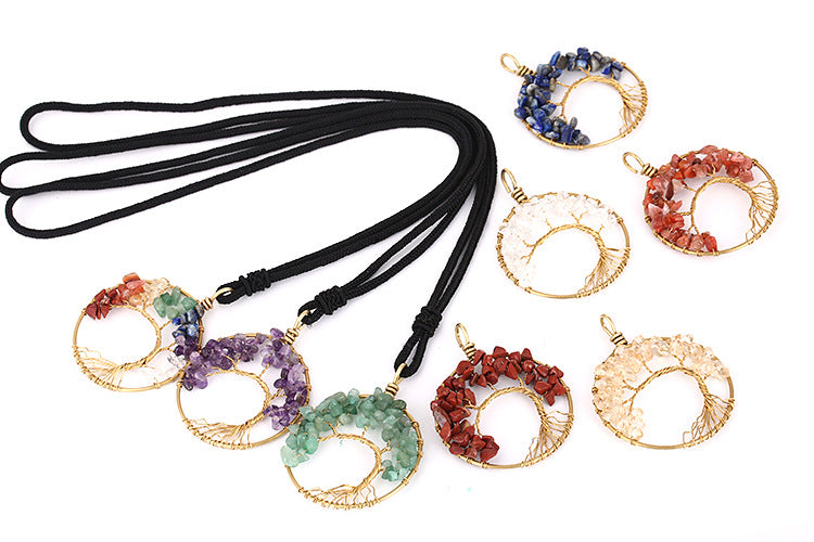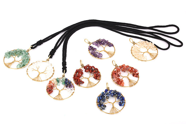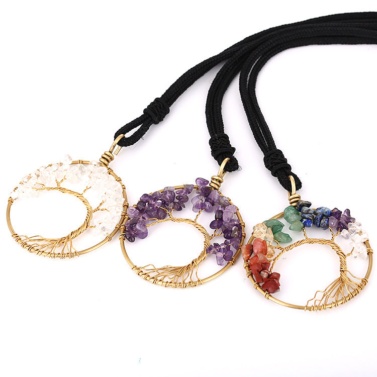 Crystal Handmade Pure Copper Primary Color Winding Gravel Lucky Necklaces