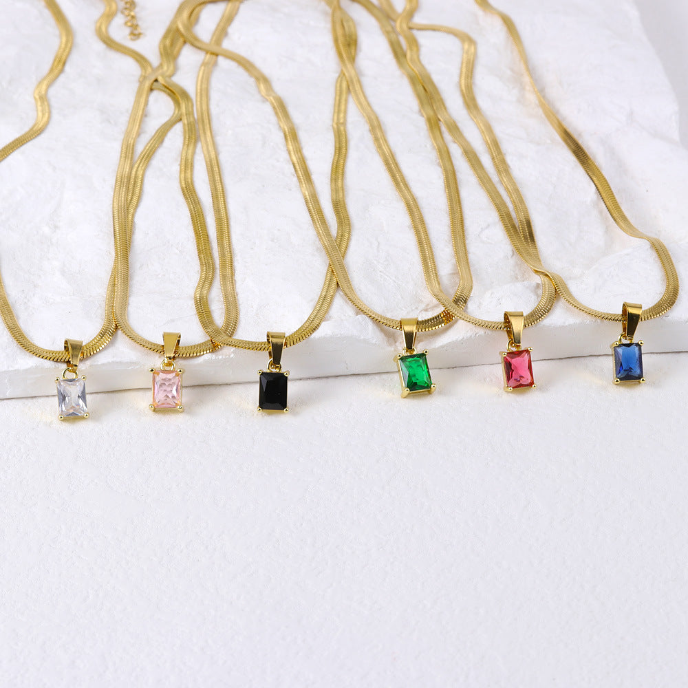 Crystal Zircon Square Diamond Suit Female Titanium Necklaces