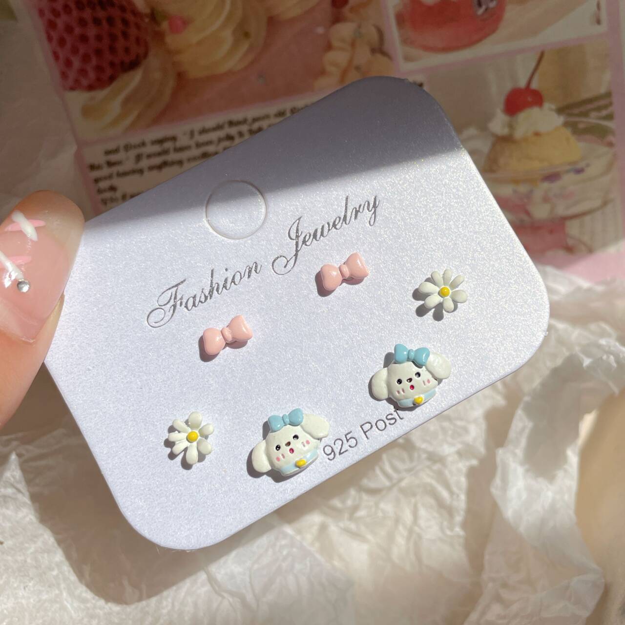 Cute Cartoon Cat Peach Heart Three-piece Set Funny Exquisite Earrings