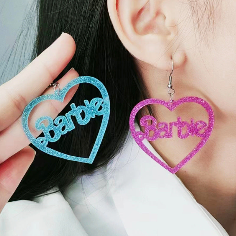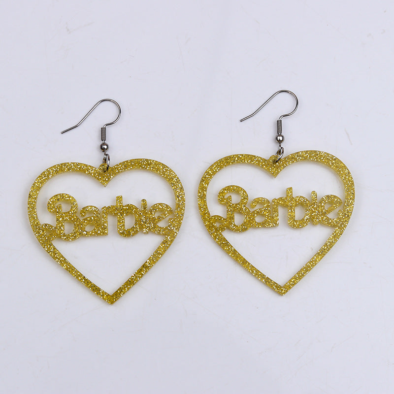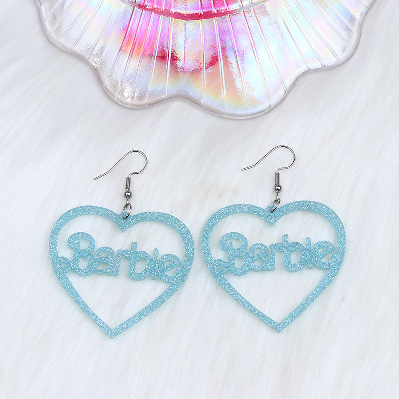 Day Hollowed Heart Shape Barbie Pink Earrings
