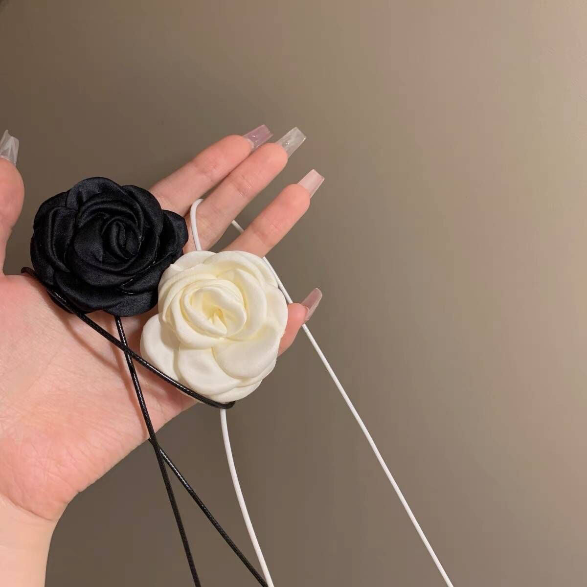 Desire Black Rose Flower Handmade Fabric Necklaces