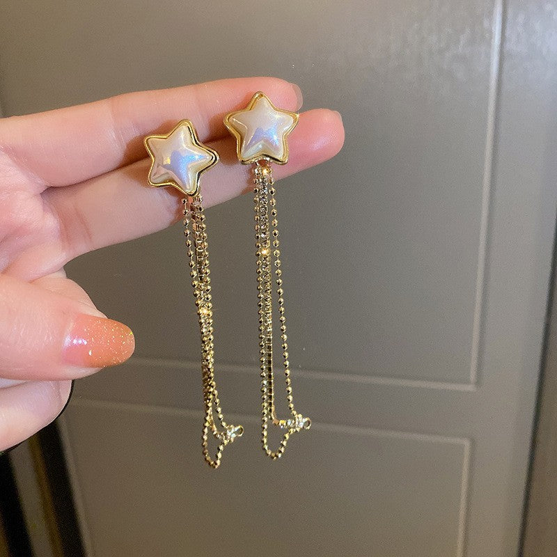 Diamond Tassel Trendy Design Bridal Pearl Cold Earrings