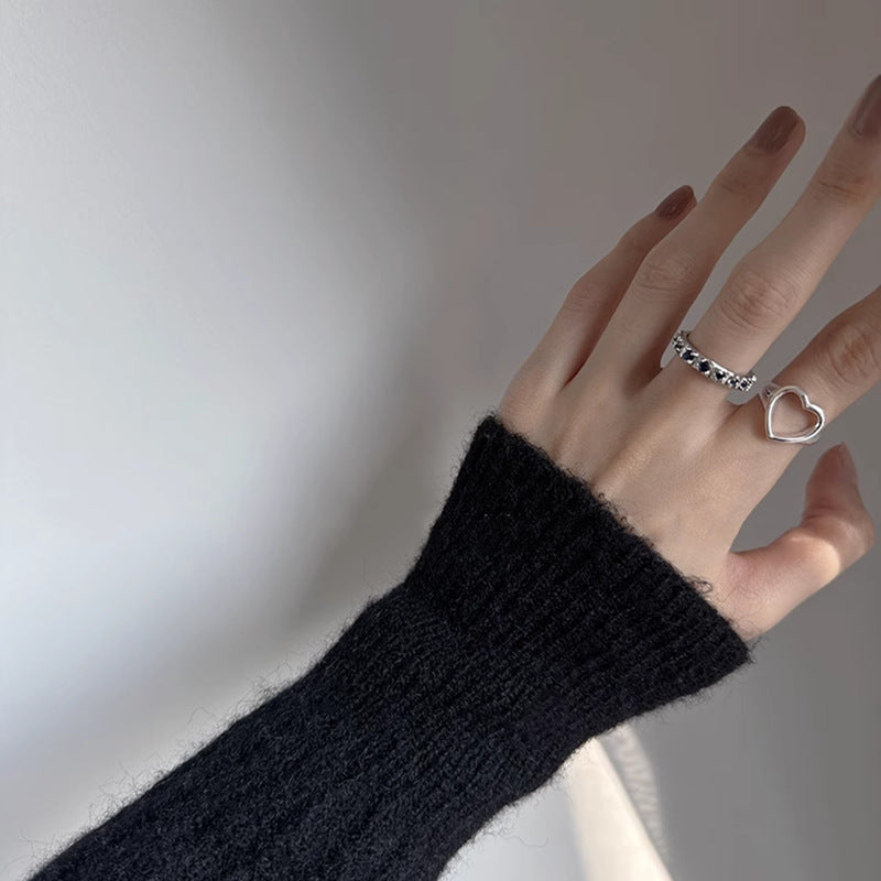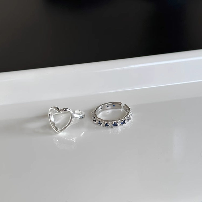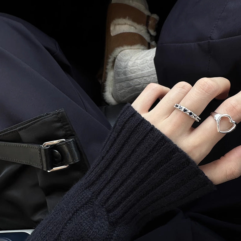 Drill Big Love Heart-shaped Female Cold Wind Stylish Rings