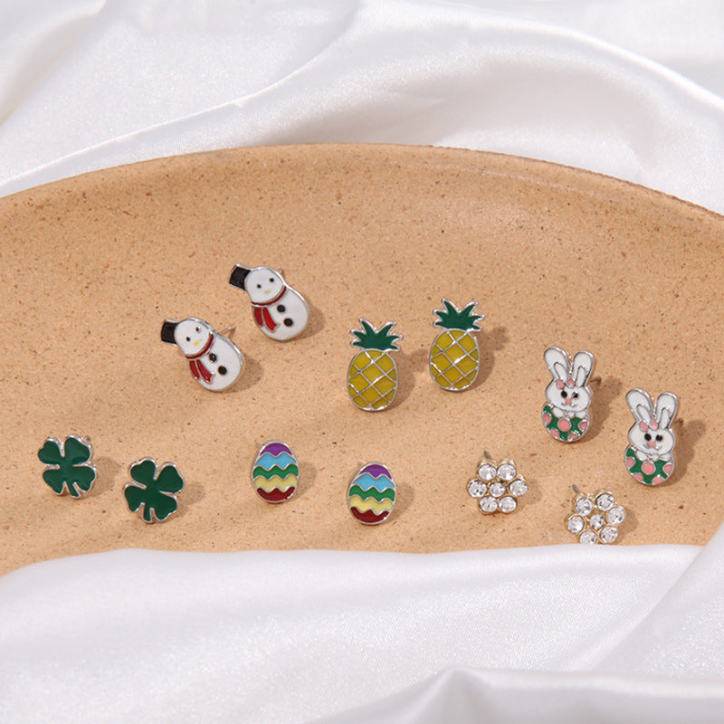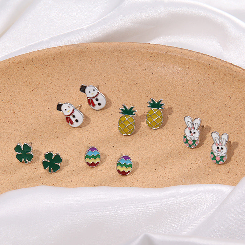 Easter Oil Dripping Alloy Egg Rabbit Earrings