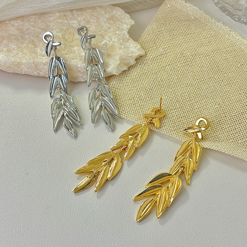 Electroplated Leaves Frosty Style Sier Needle Niche Delicate Earrings