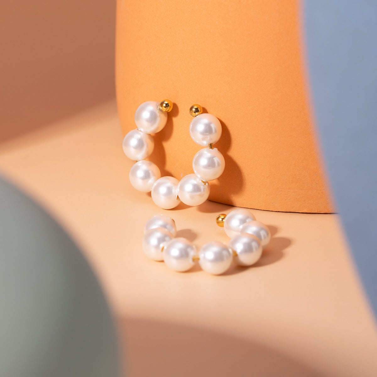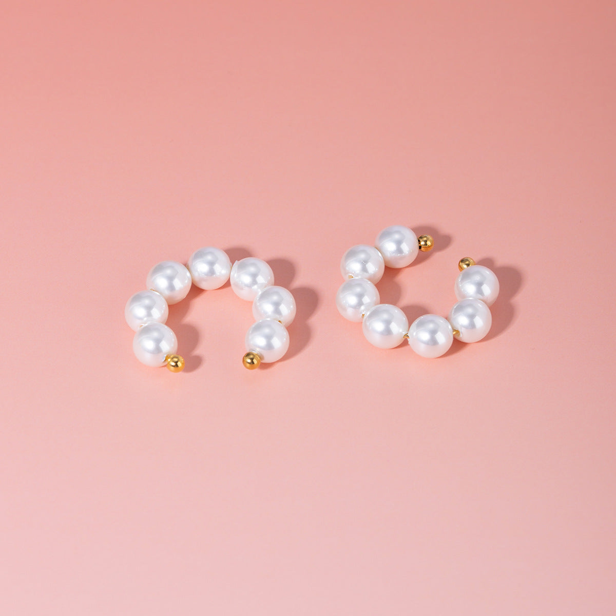 Elegant Gold Stainless Steel Large Pearl Ear Clip Rings