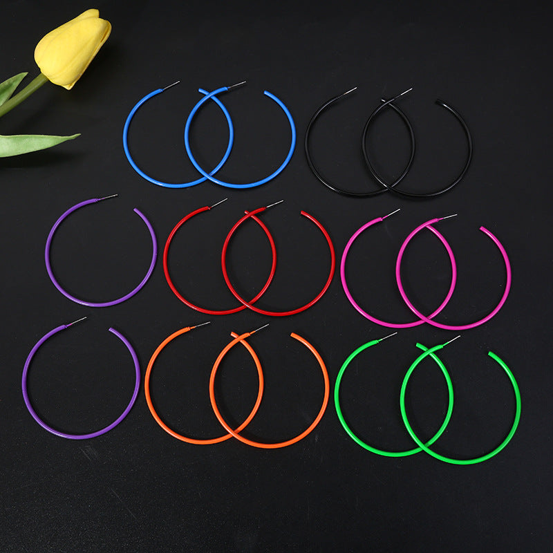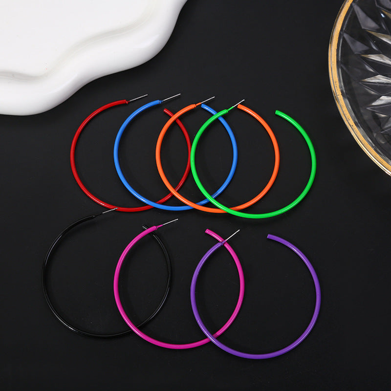 Exaggerated Metal Circle Paint Temperament Candy Earrings