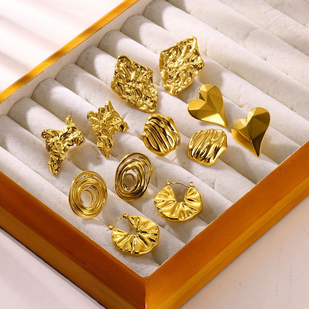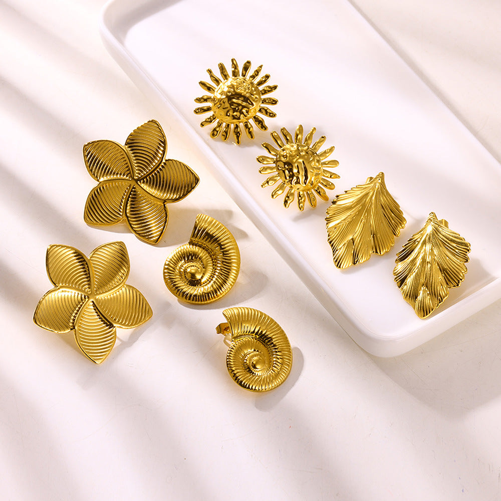 Exaggerated Stainless Steel Golden Flower Female Petal Rings