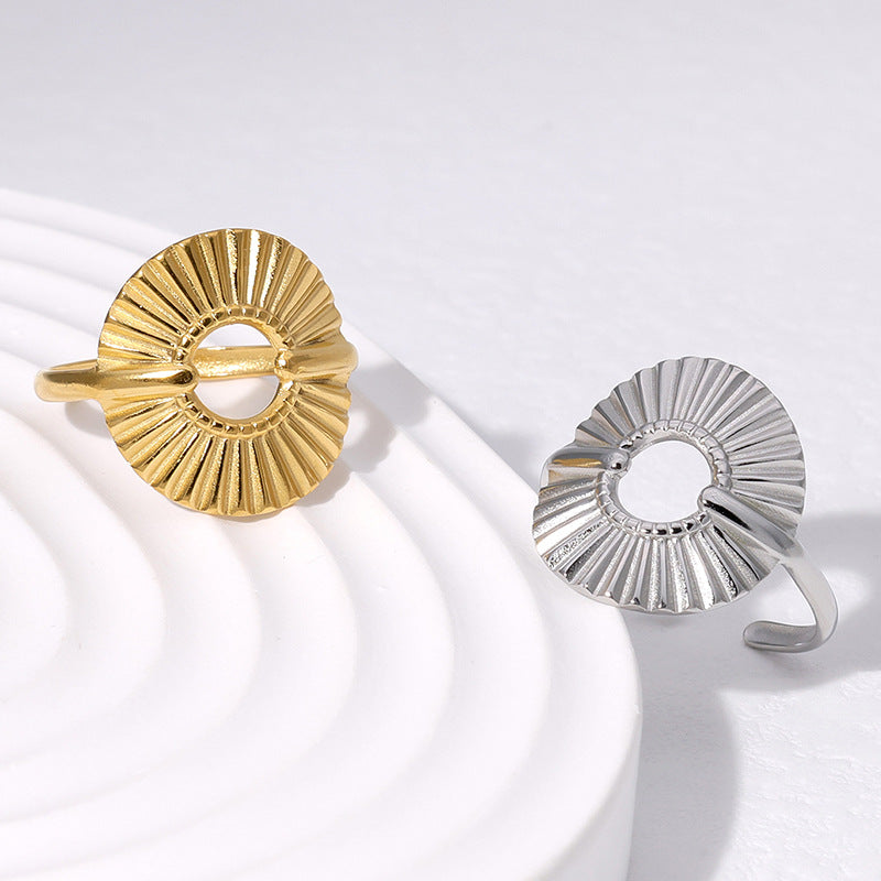 Fashion Pleated Stainless Steel Open Geometric Rings