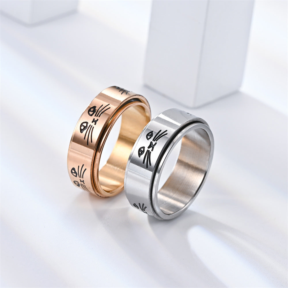 Fashion Rotatable Cute Cat Pattern Couple Rings