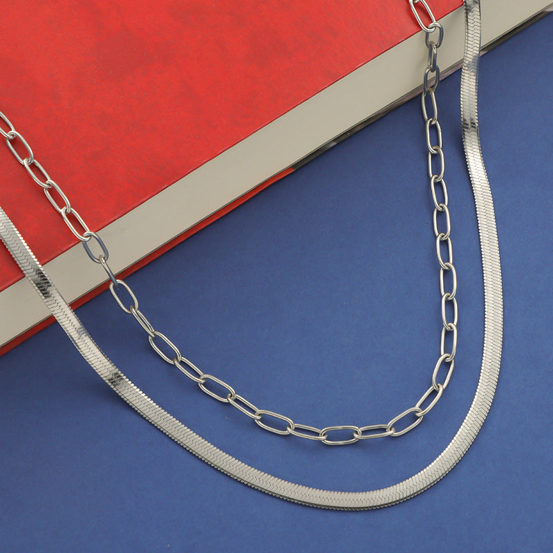 Fashion Titanium Steel Double Layer Blade Chain Necklaces