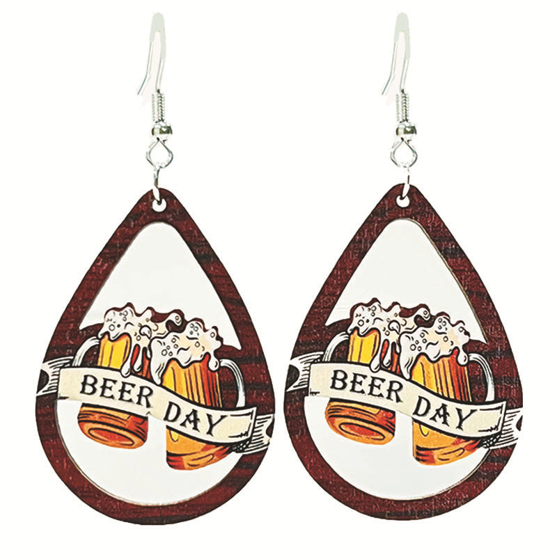 Festival Wooden Hollow Eardrops Fun Funny Humor Earrings