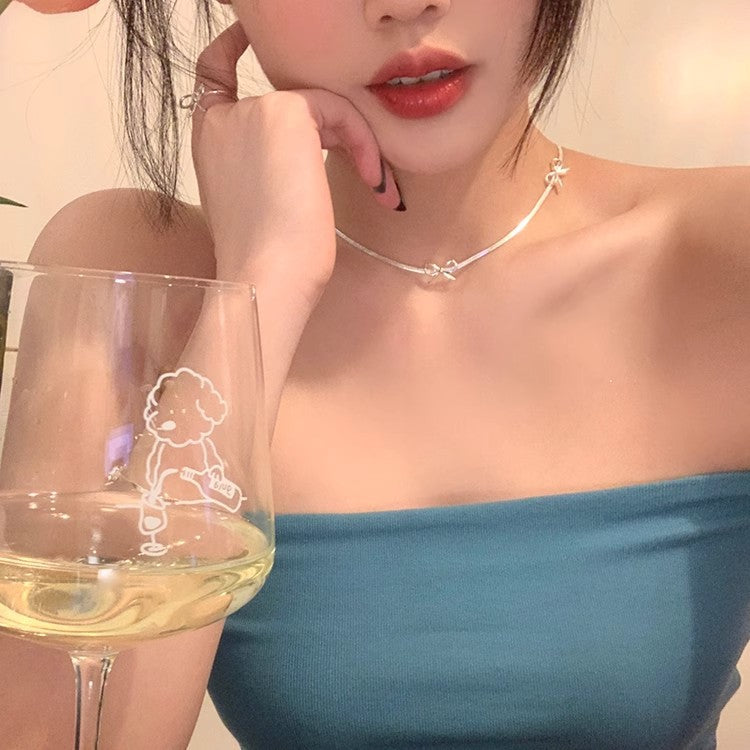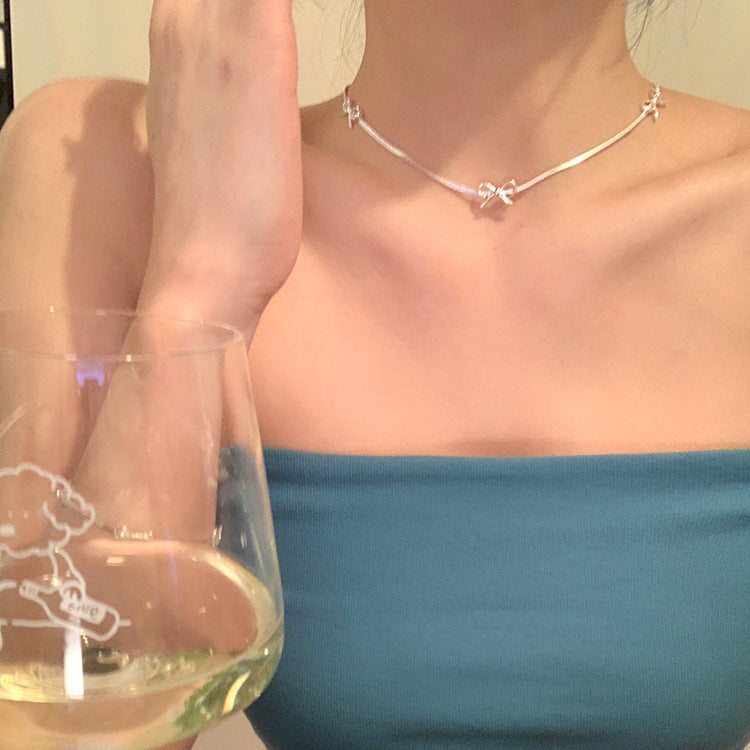 French Style Temperament Bow Snake Bones Chain Necklaces