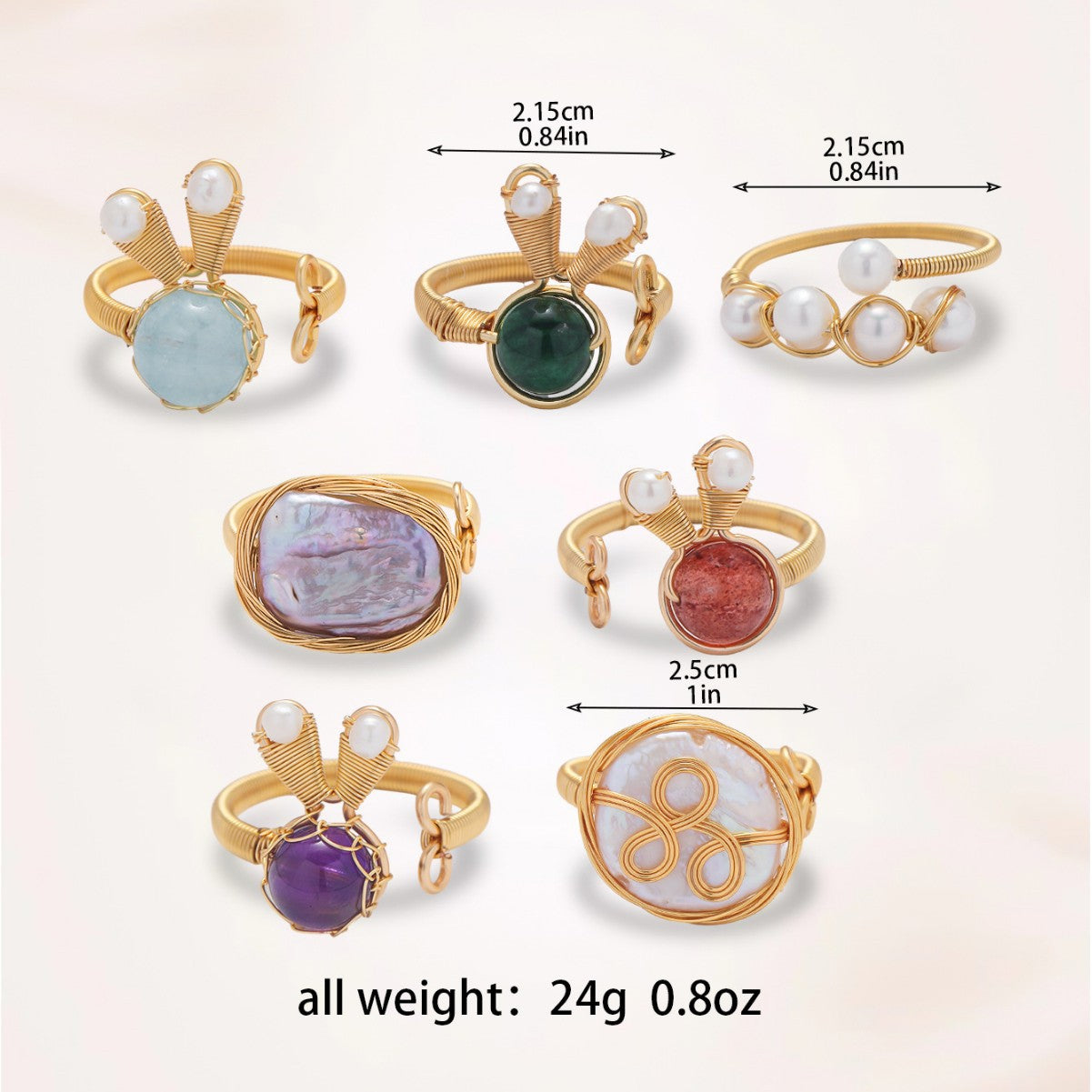 Freshwater Baroque Shaped Pearl Opal Simple Rings