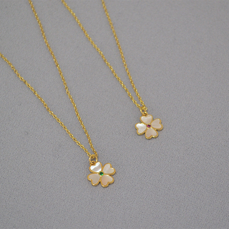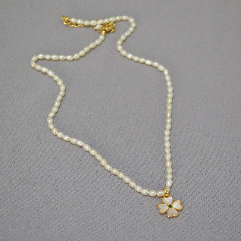 Freshwater Rice Grain Pearl Clover Inlaid Colorful Necklaces