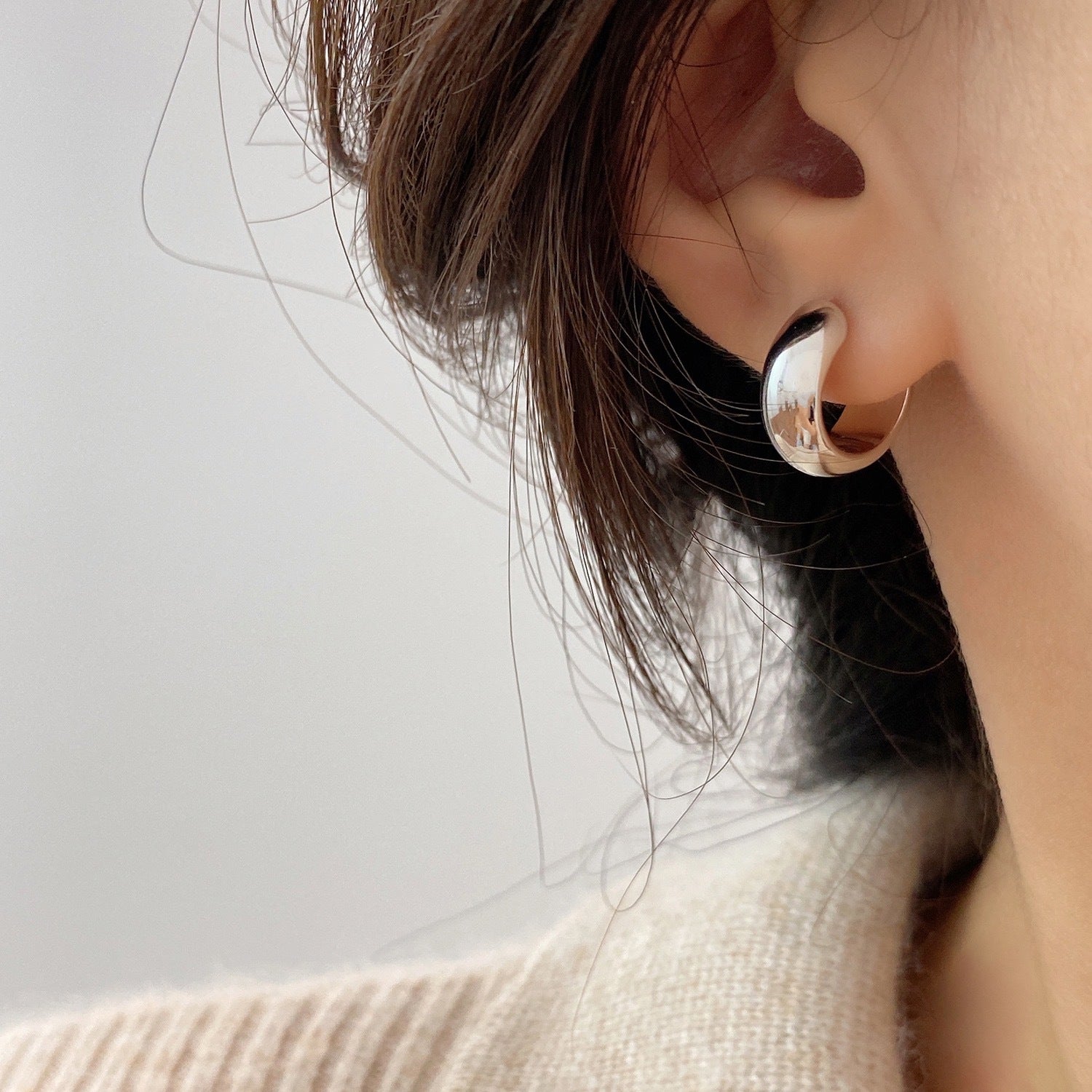 Gold-plated Small Solid Shaped Bean-shaped Sier Needle Earrings