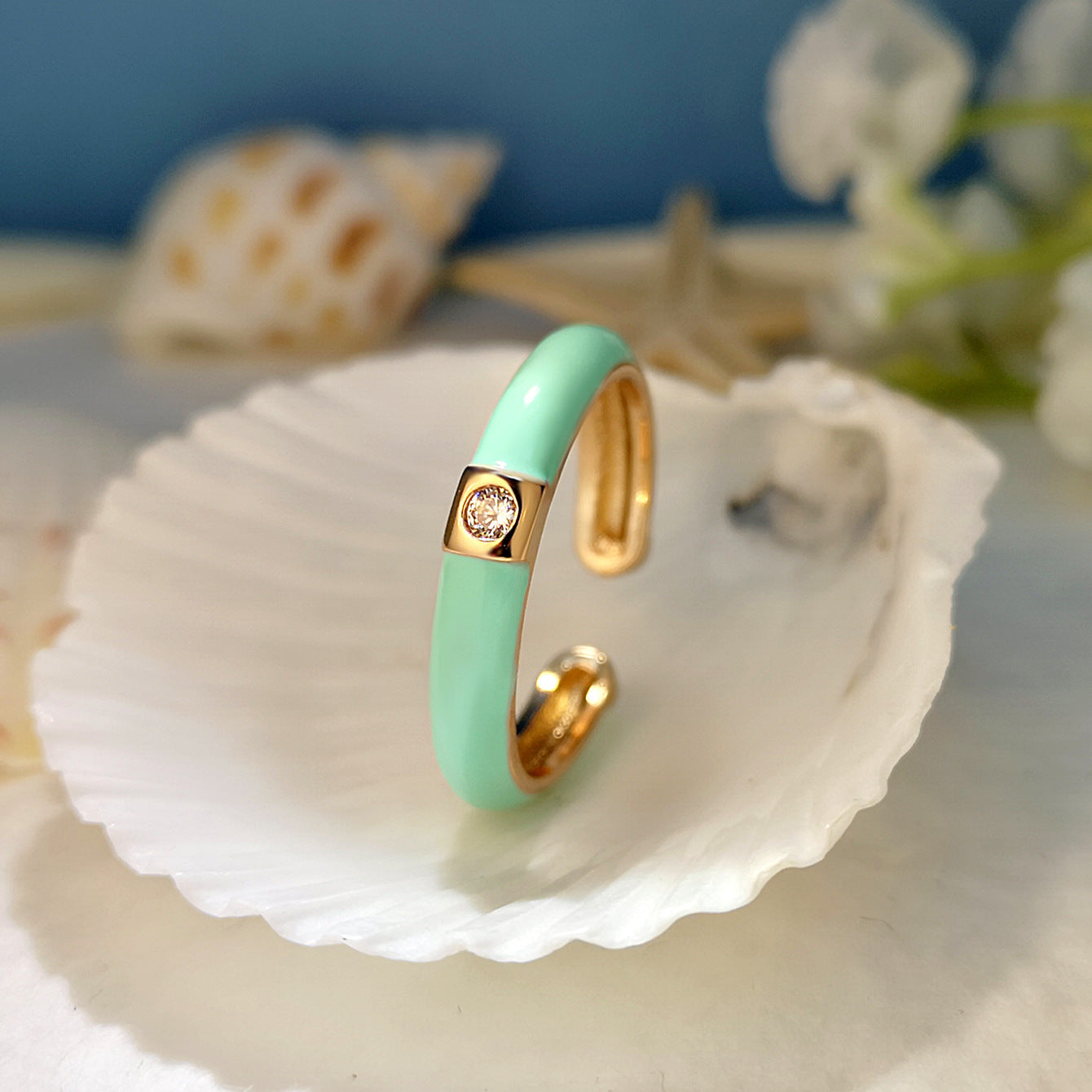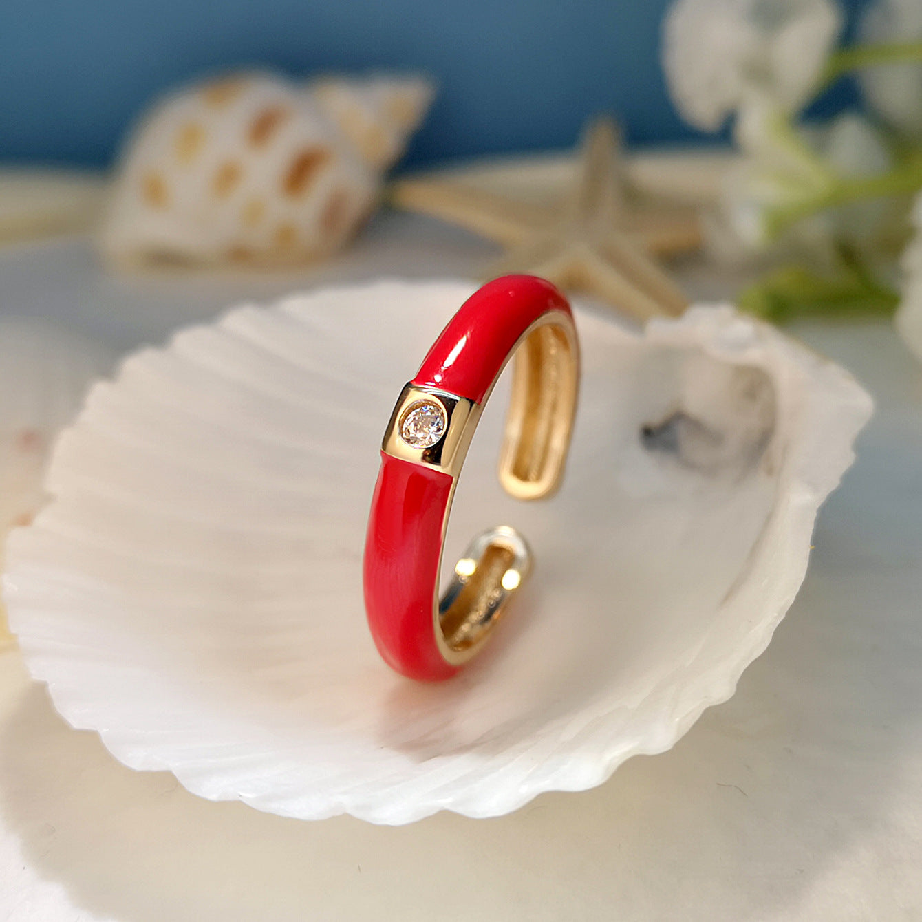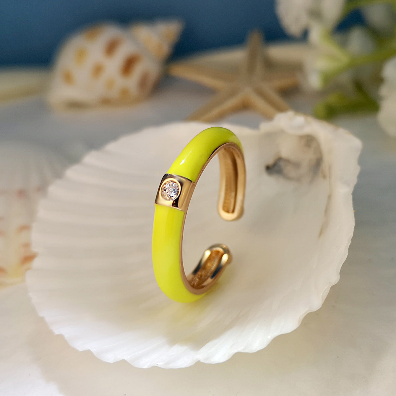 Gold-plated Zircon Simple Design Colorful Oil Rings