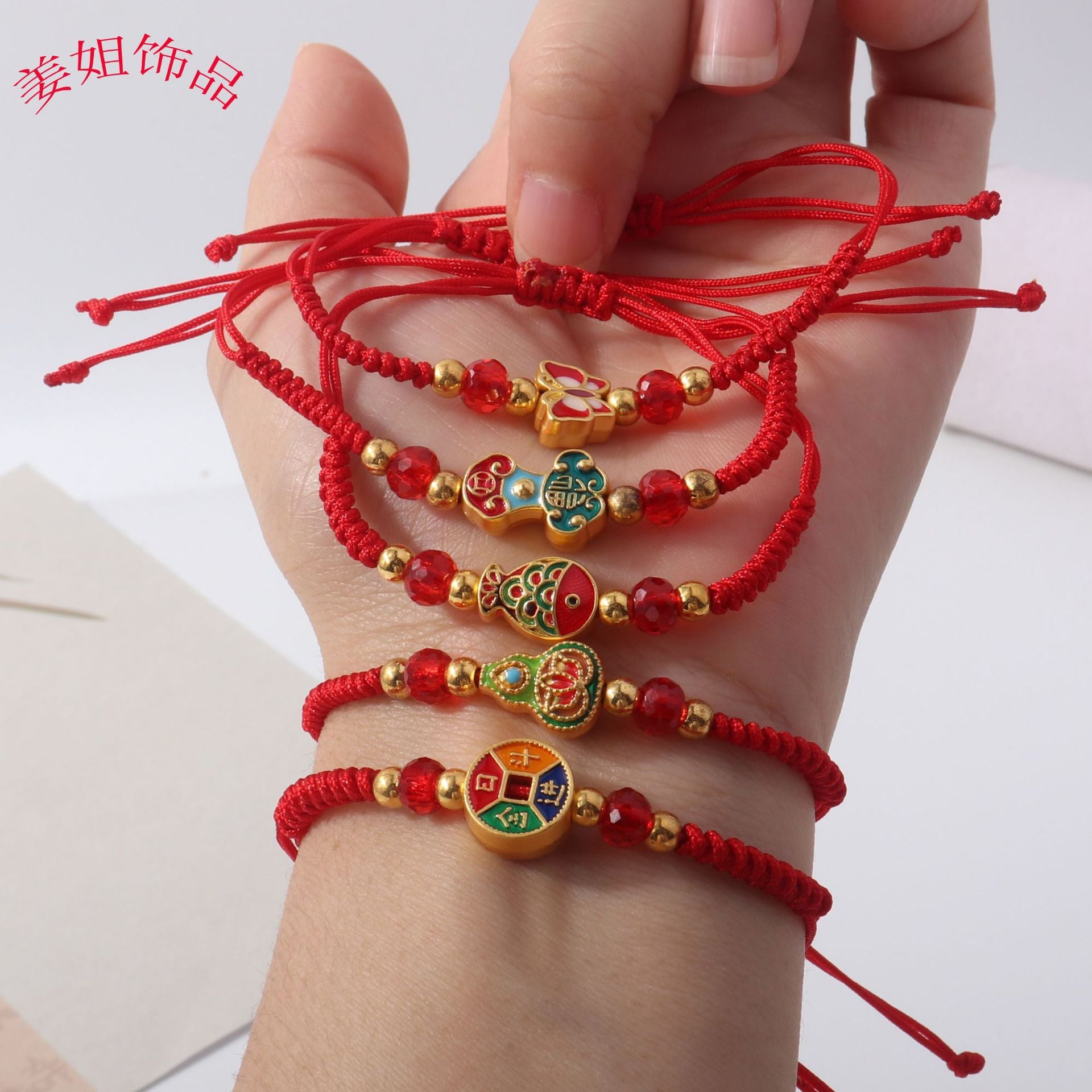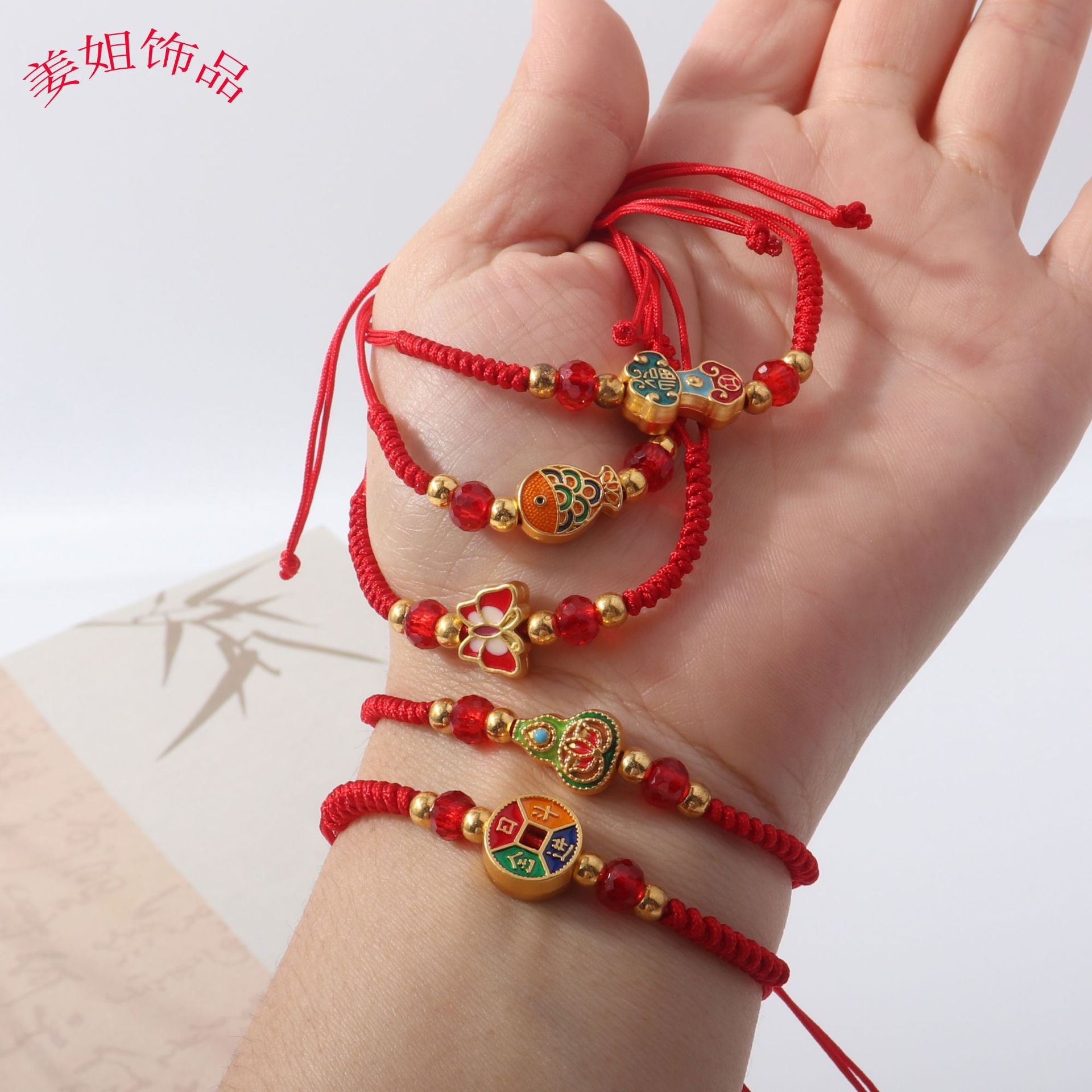 Gold Red Rope Woven Goldfish Butterfly Bracelets